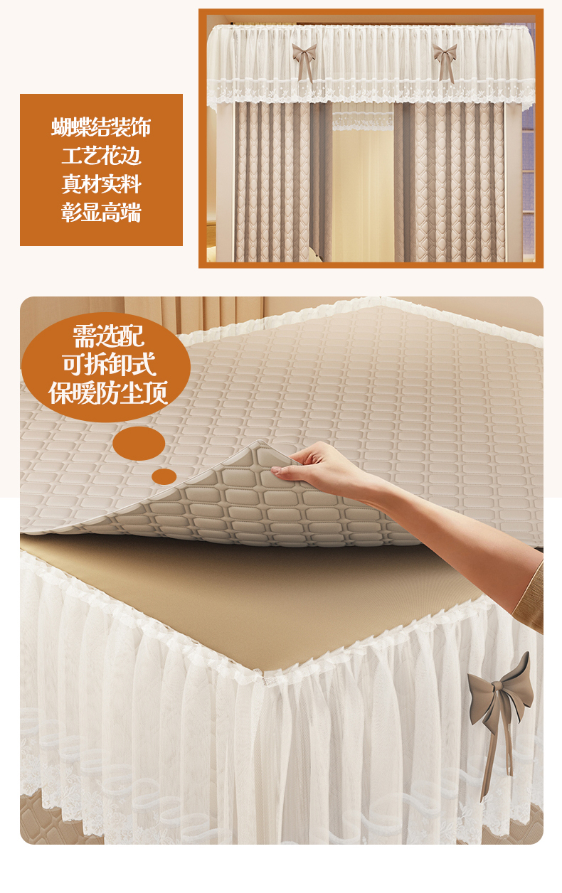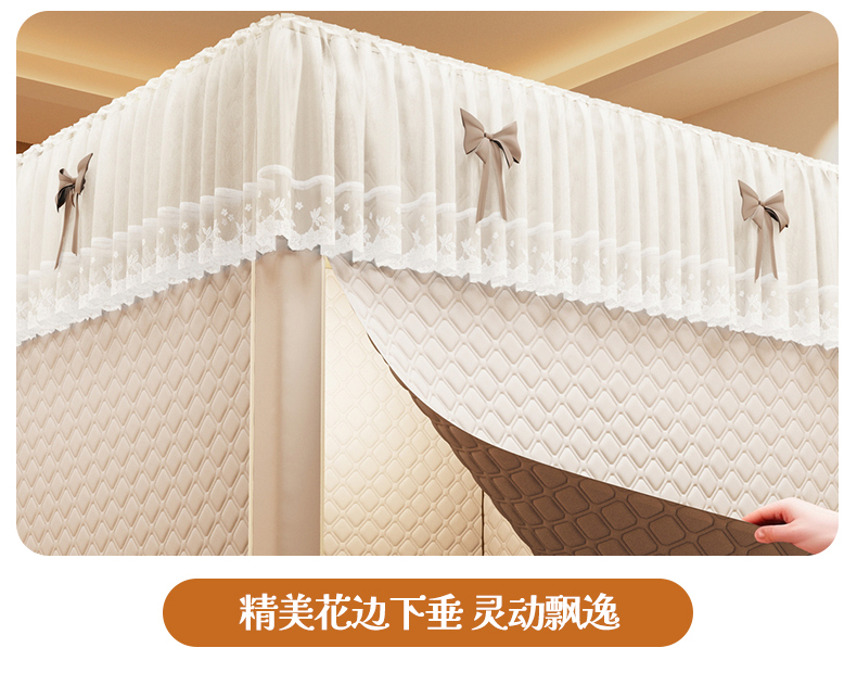 • 91家纺网 家纺一手货源 找家纺 (总)夏彩 2025新款蕾丝U型防摔坐床蚊帐-88630,绿雅灰,藕玉色,香槟色