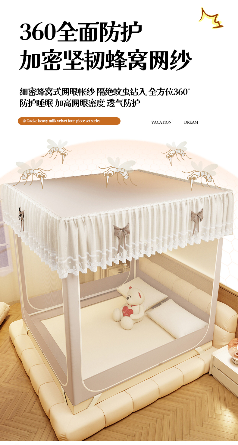 • 91家纺网 家纺一手货源 找家纺 夏彩 2025新款五面保暖坐床拉链四季款蚊帐-88631 香槟色