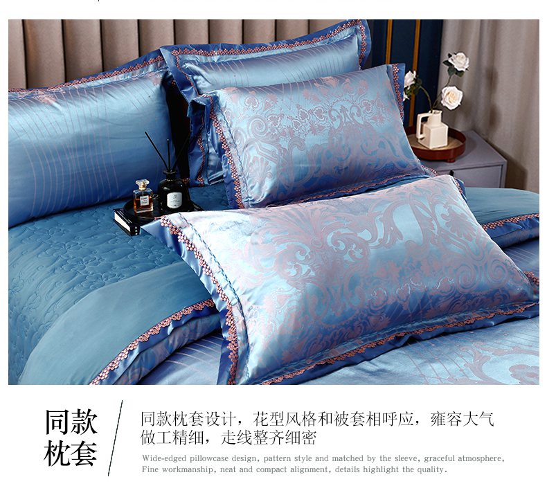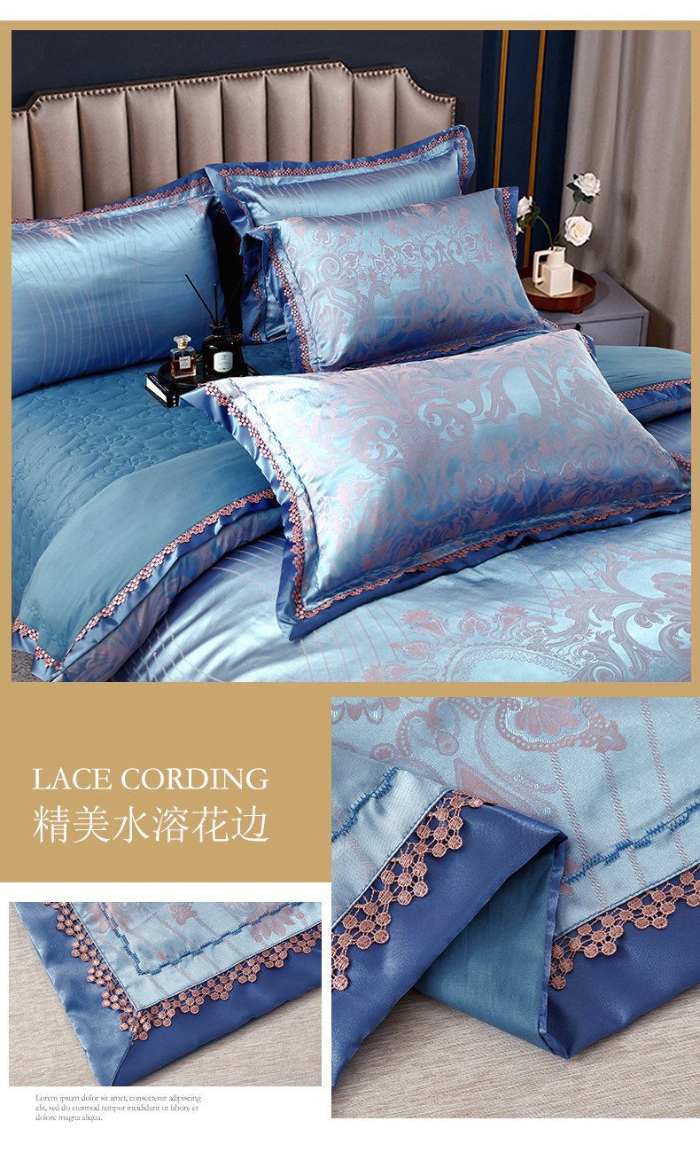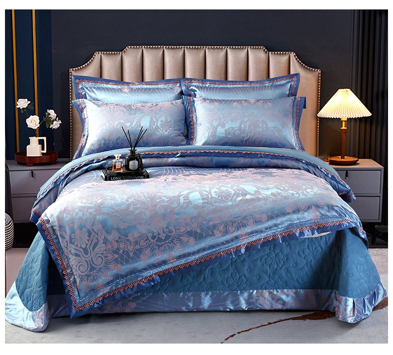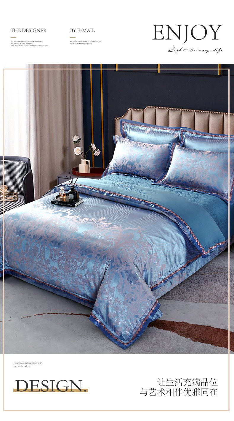 商品名称:OL家纺 2025新款亲肤丝加棉提花四件套 莫奈情怀-浅兰