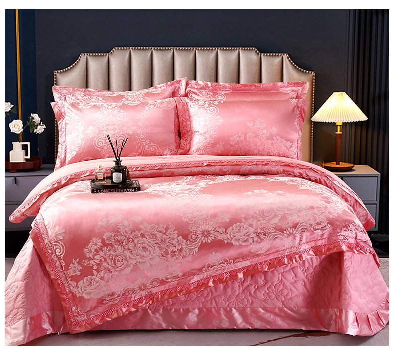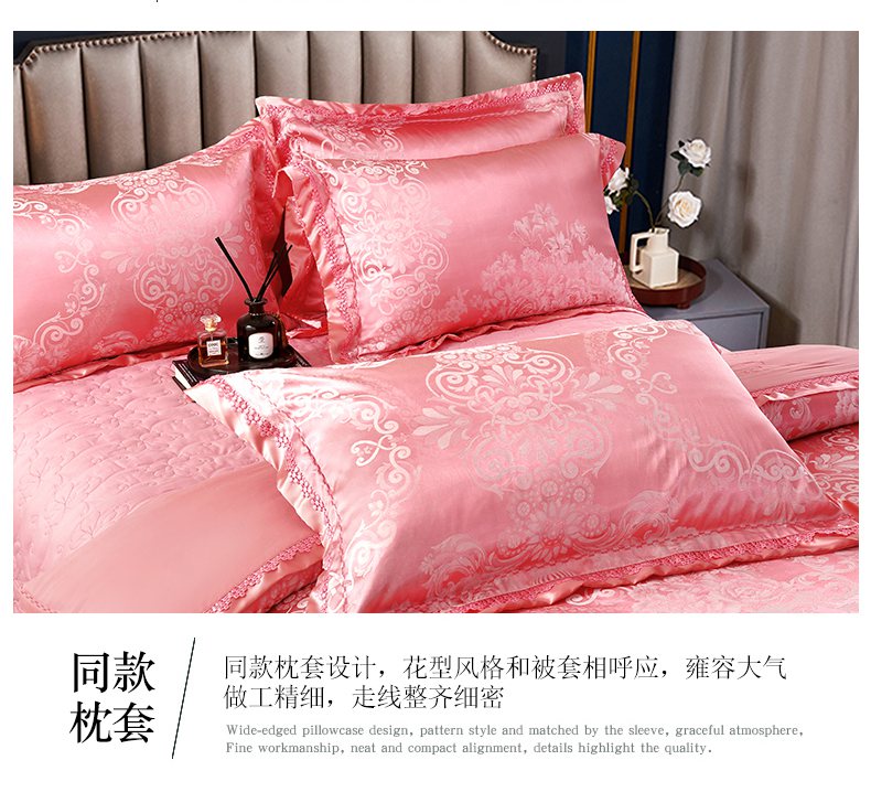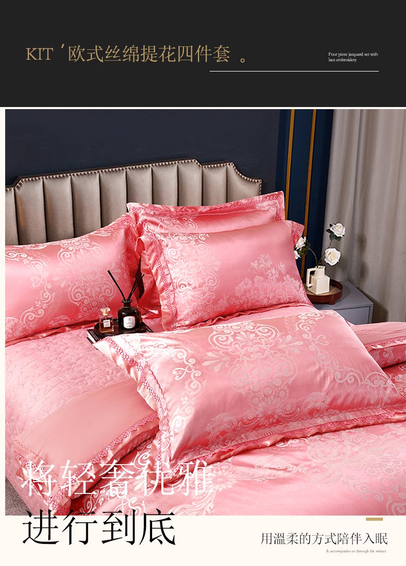 商品名称:OL家纺 2025新款亲肤丝加棉提花四件套 馨香甜梦-洋红