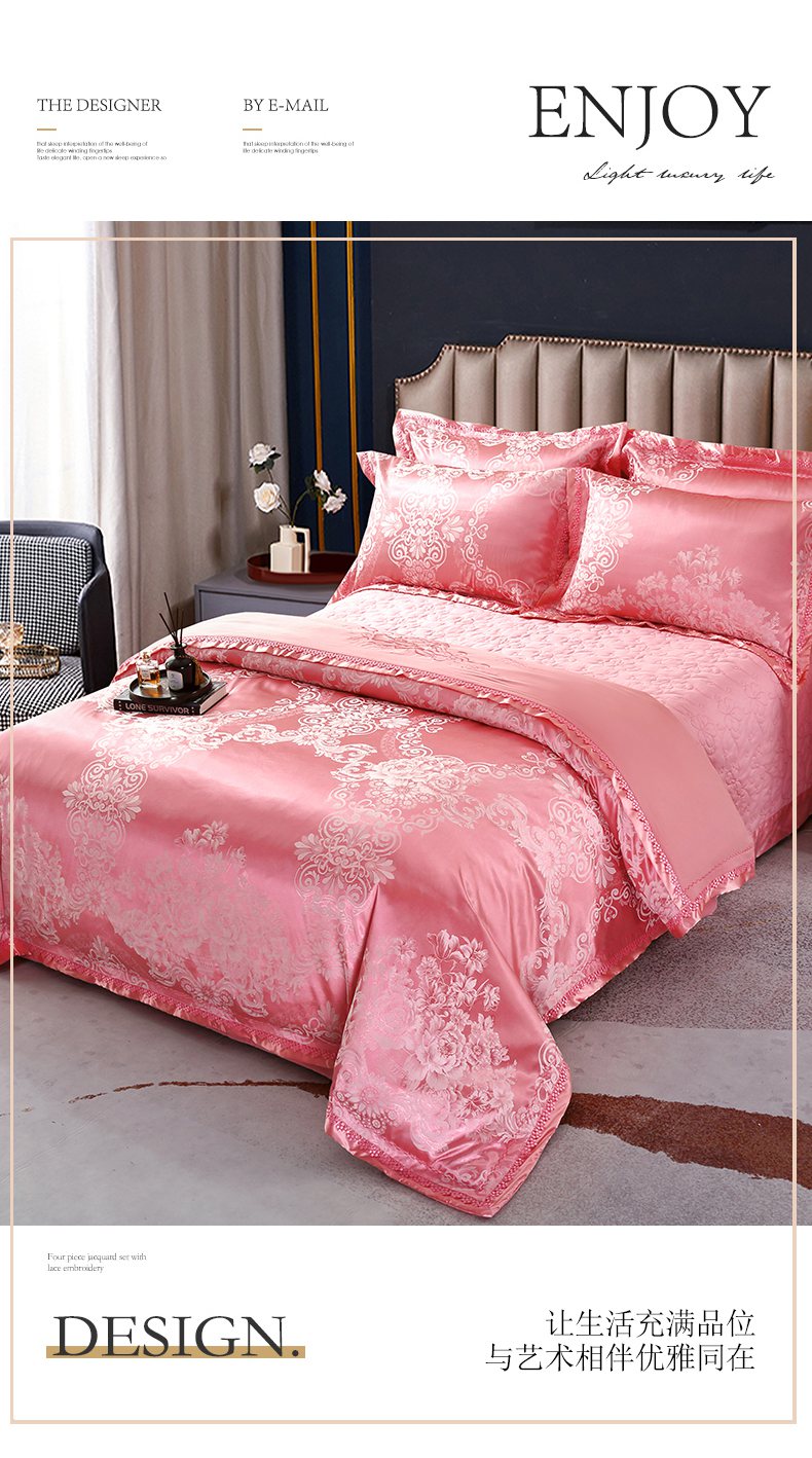 (总)OL家纺 2025新款亲肤丝加棉提花四件套,巴黎舞曲-兰金,璀璨年华-西瓜红,淡雅芬芳-水绿,迪丽娜 紫驼,费列罗-金灰,费列罗-兰豆沙,贵族豪情-奶咖,花语寻梦-粉玉,花悦怡情-炫兰,华丽盛典-卡其灰,喀秋莎-灰绿,蜜月花期-夕阳红,蜜月花期-象牙玉,莫奈情怀-浅兰,纽约风情-银灰,欧典风尚 驼色,青春如歌-古典绿,青春如歌-金灰,奢华古典 银粉,盛世繁华-咖驼,双喜龙凤-大红,双喜龙凤-砖红,维纳斯-古典绿,馨香甜梦-洋红,优雅迷情 浅兰