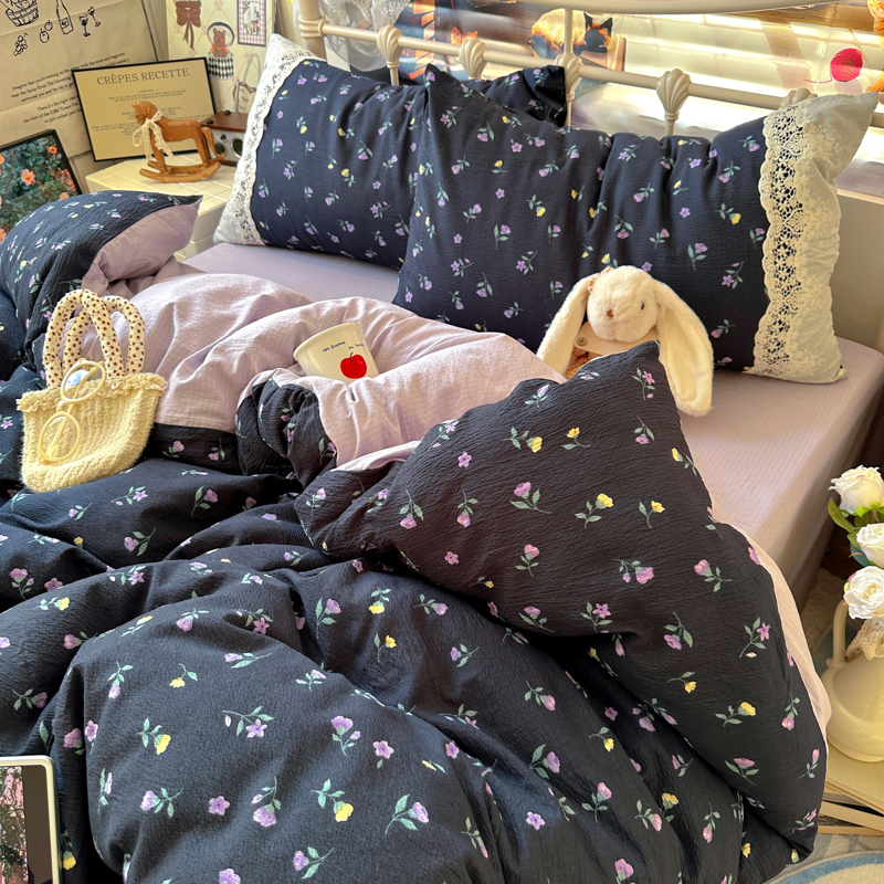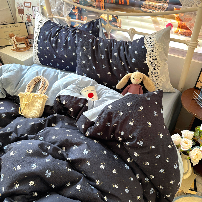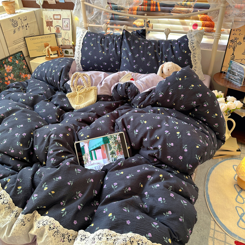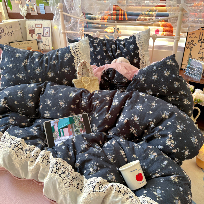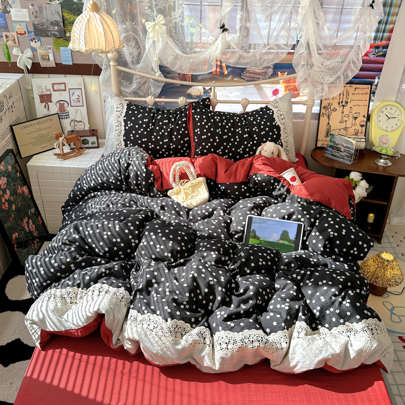 (总)阿曼达 2025新款韩系法式慵懒氛围感印花泡芙花边四件套(专版花型),樱花泡芙-黑,樱花泡芙-红,樱花泡芙-蓝,樱花泡芙-梨漫,樱花泡芙-宅妹粉