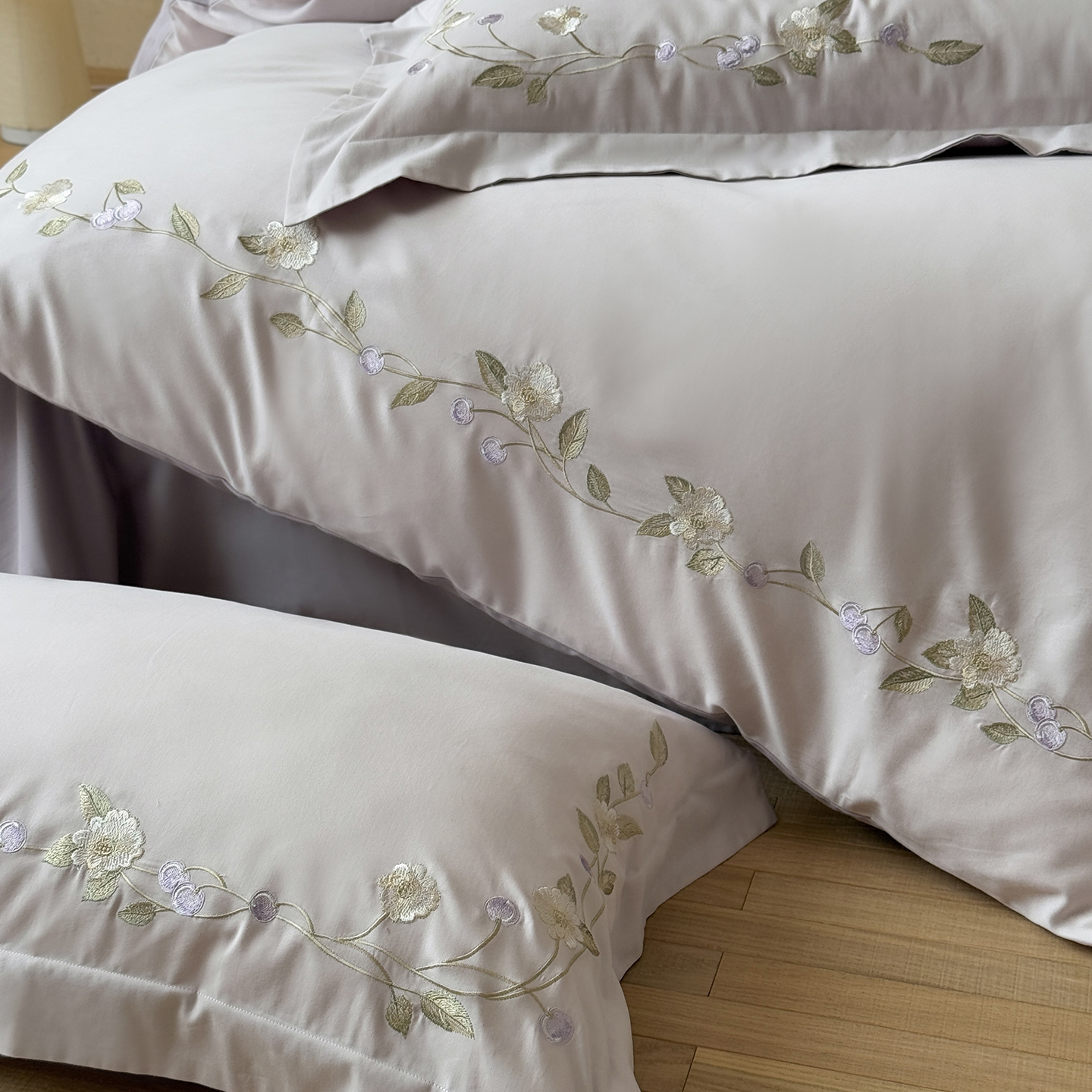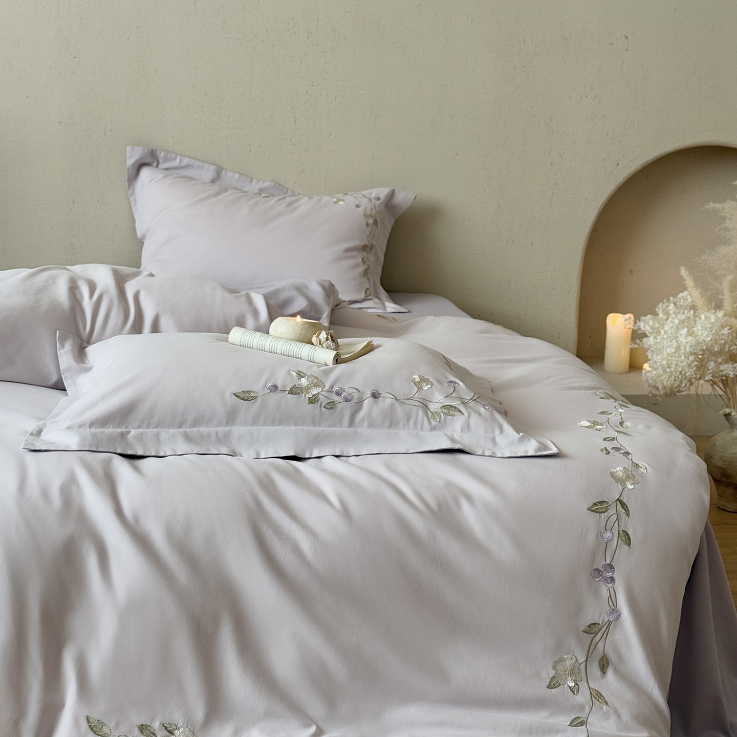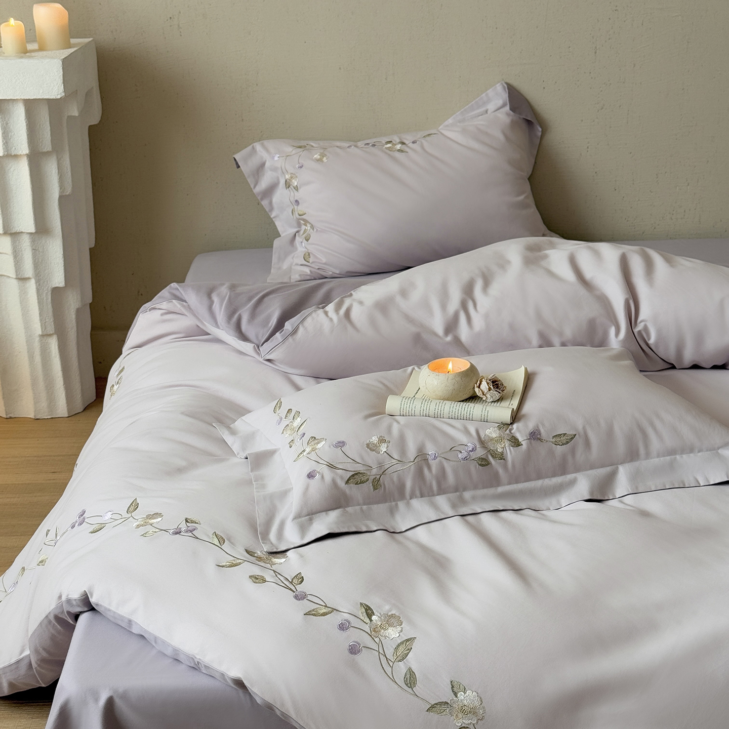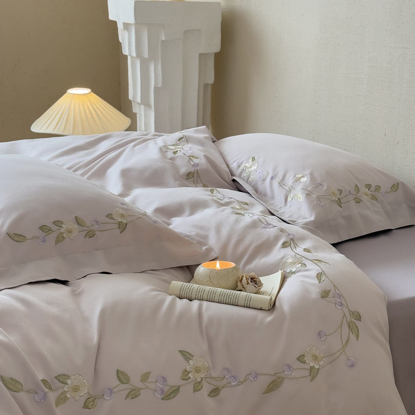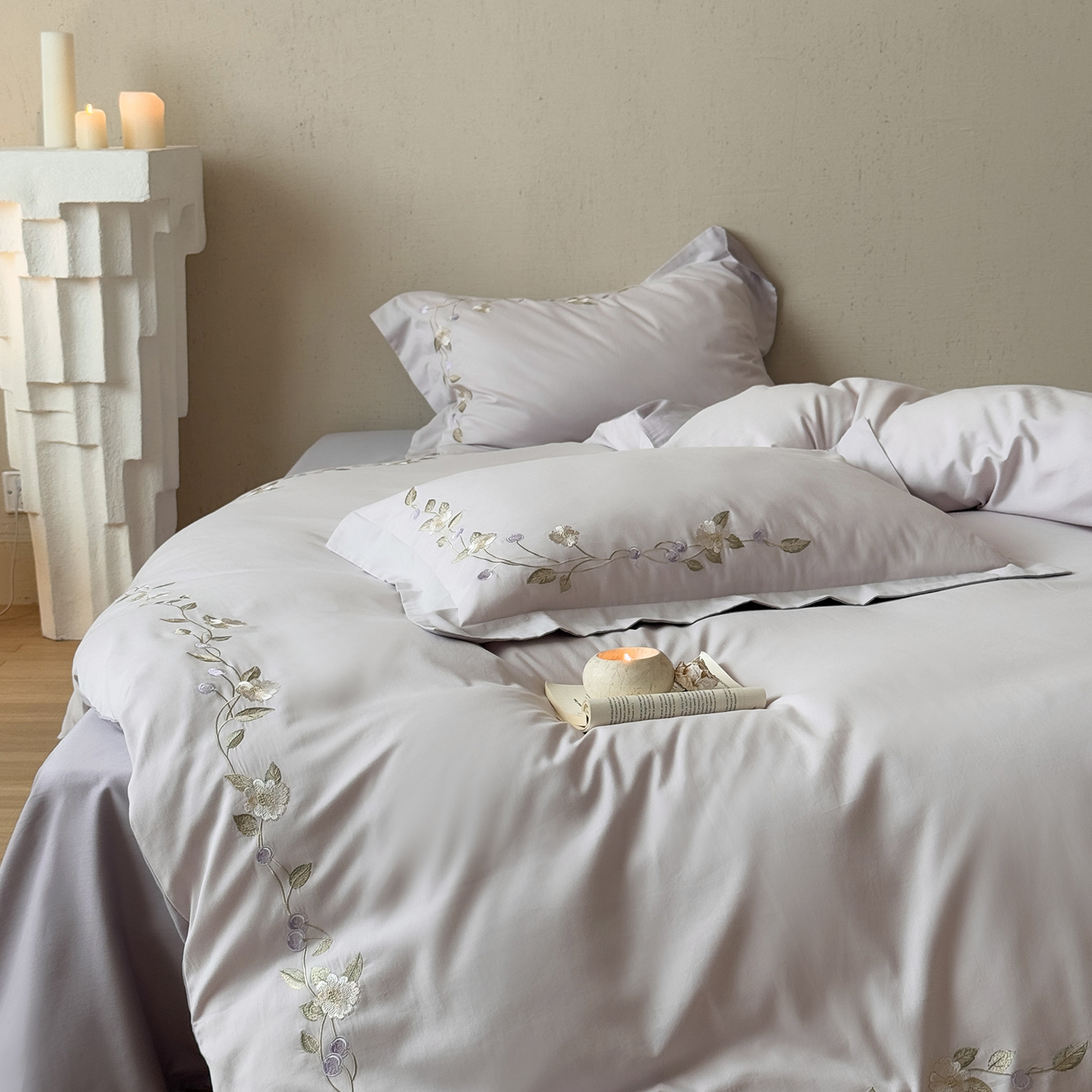 (总)佳汐蓝家纺 2026新款新疆长绒棉全棉纯棉轻奢五线刺绣四件套,初雪白,稻谷米,冷釉灰,汐雾蓝,薰衣紫,釉粉,朱砂红