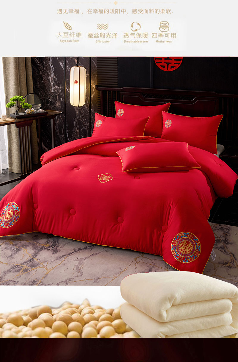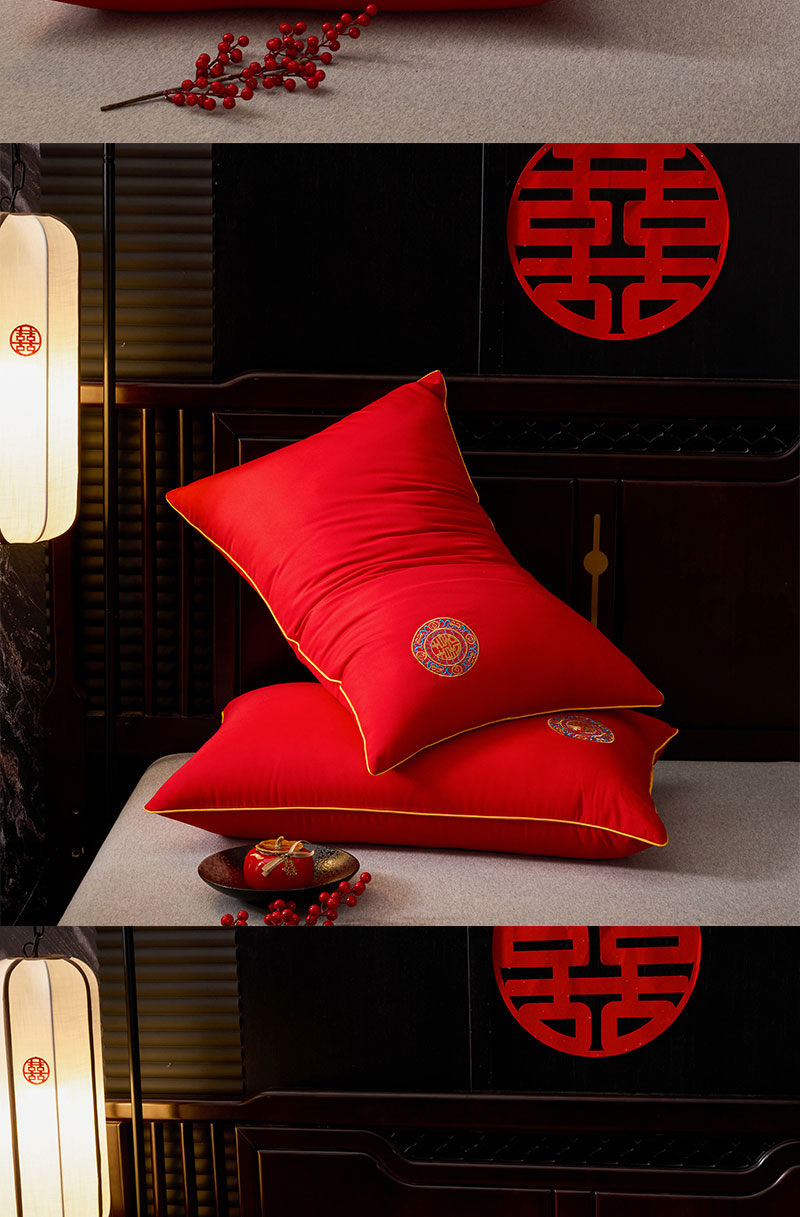商品名称:啊雅家居 2026新款结婚大红套装被芯床垫枕芯大豆棉 爱囍枕芯