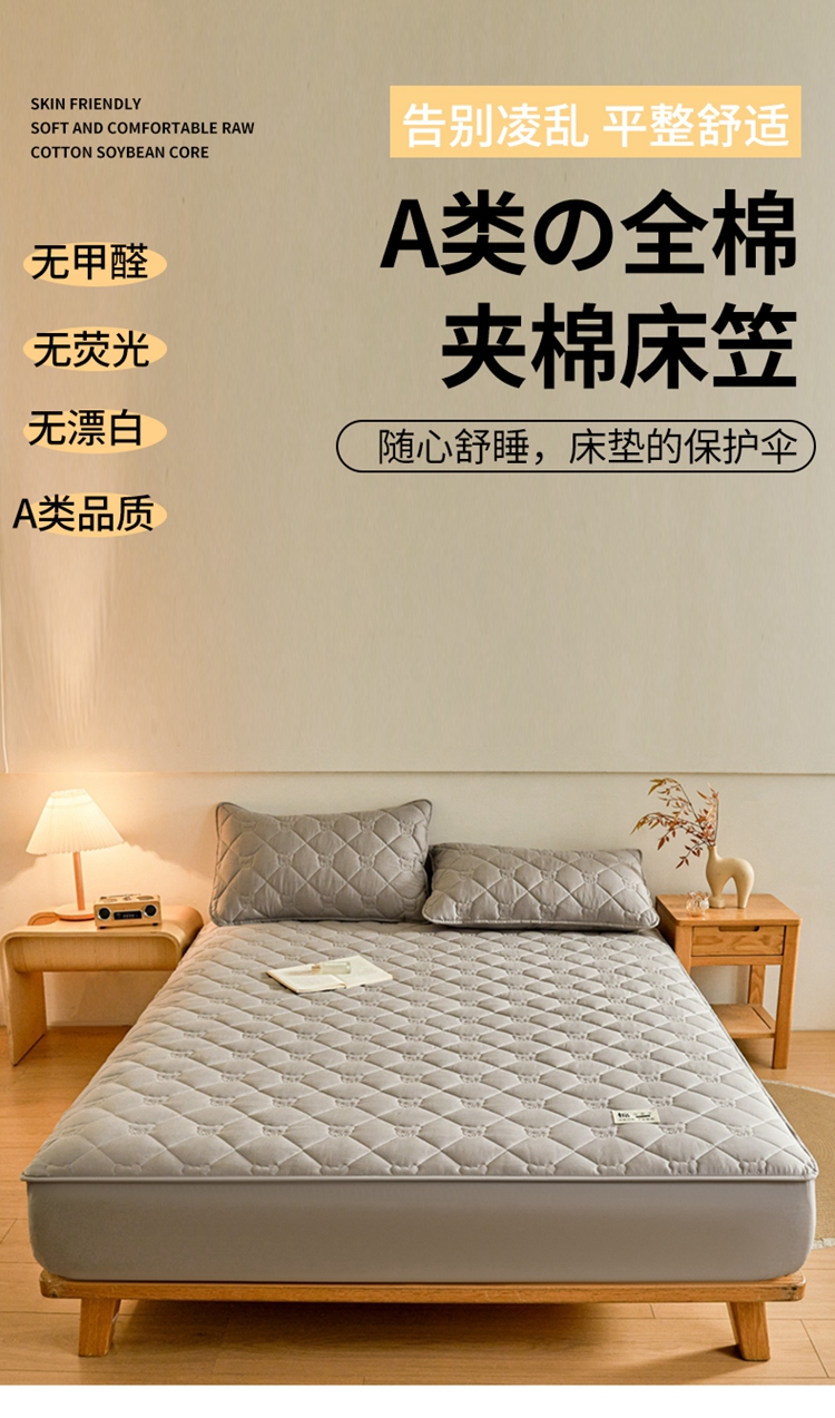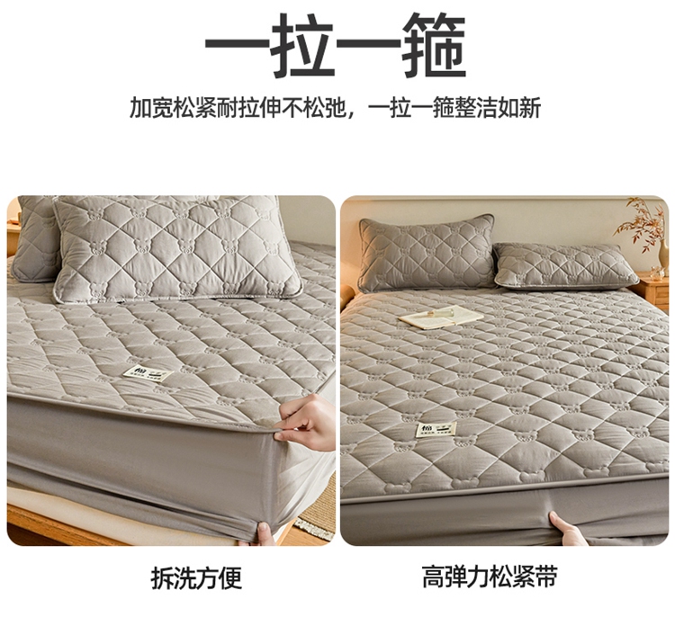 • 91家纺网 家纺一手货源 找家纺 卡诗兰 2026新款夹棉全棉床笠 小熊-烟雾灰