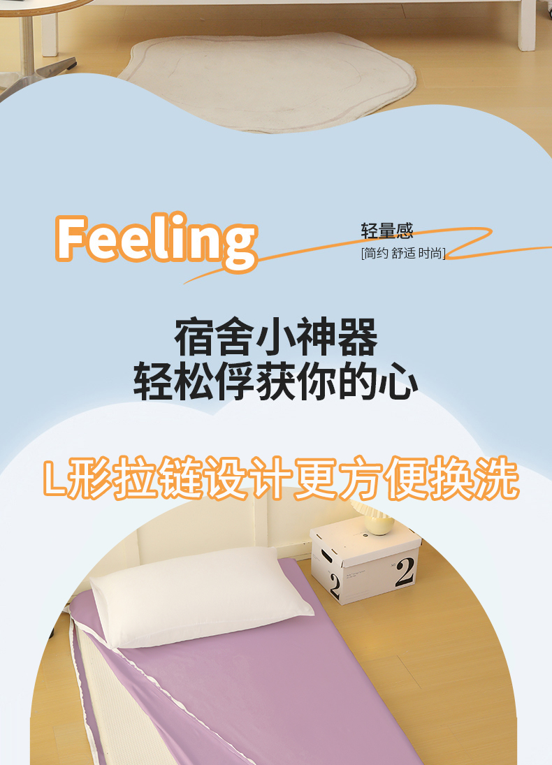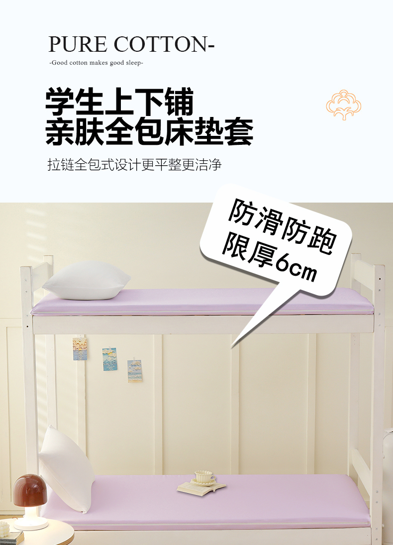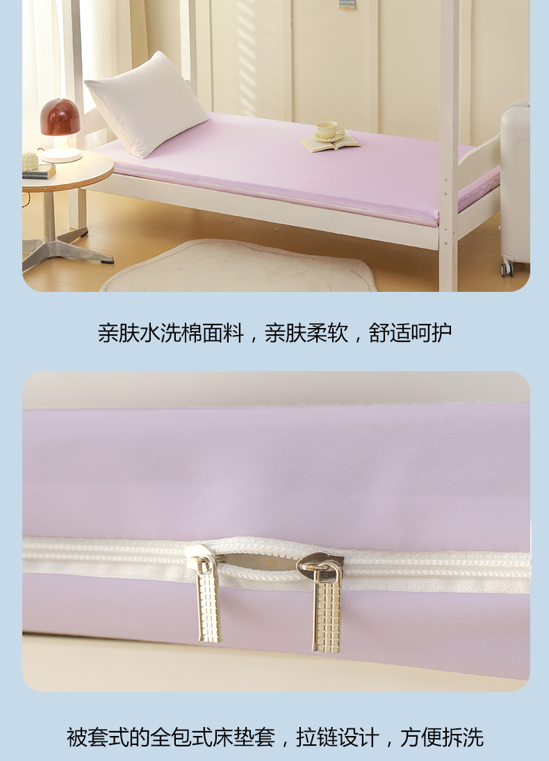 啊雅家居 2026新款L形拉链全包床垫套学生宿舍家用被褥套 紫色