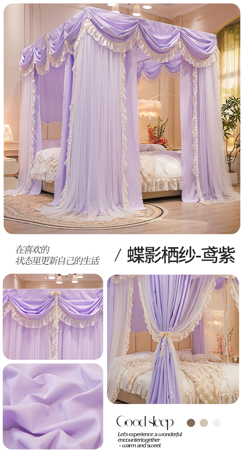 (总)艾晶美家纺有限公司 2026新款法式公主风 双杆双层落地床幔遮光蚊帐,蝶影栖纱-荷绿,蝶影栖纱-奶黄,蝶影栖纱-鸢紫,蝶影栖纱-水粉,蝶影栖纱-暖玉,蝶影栖纱-酒红