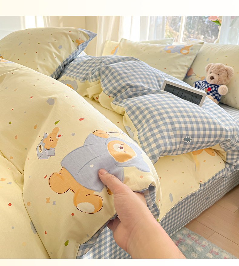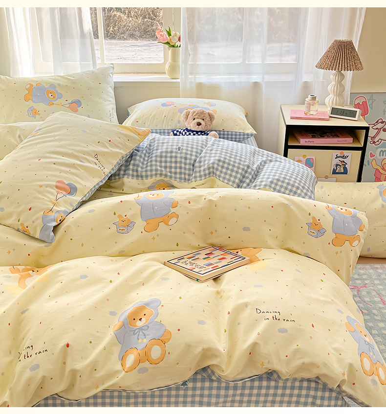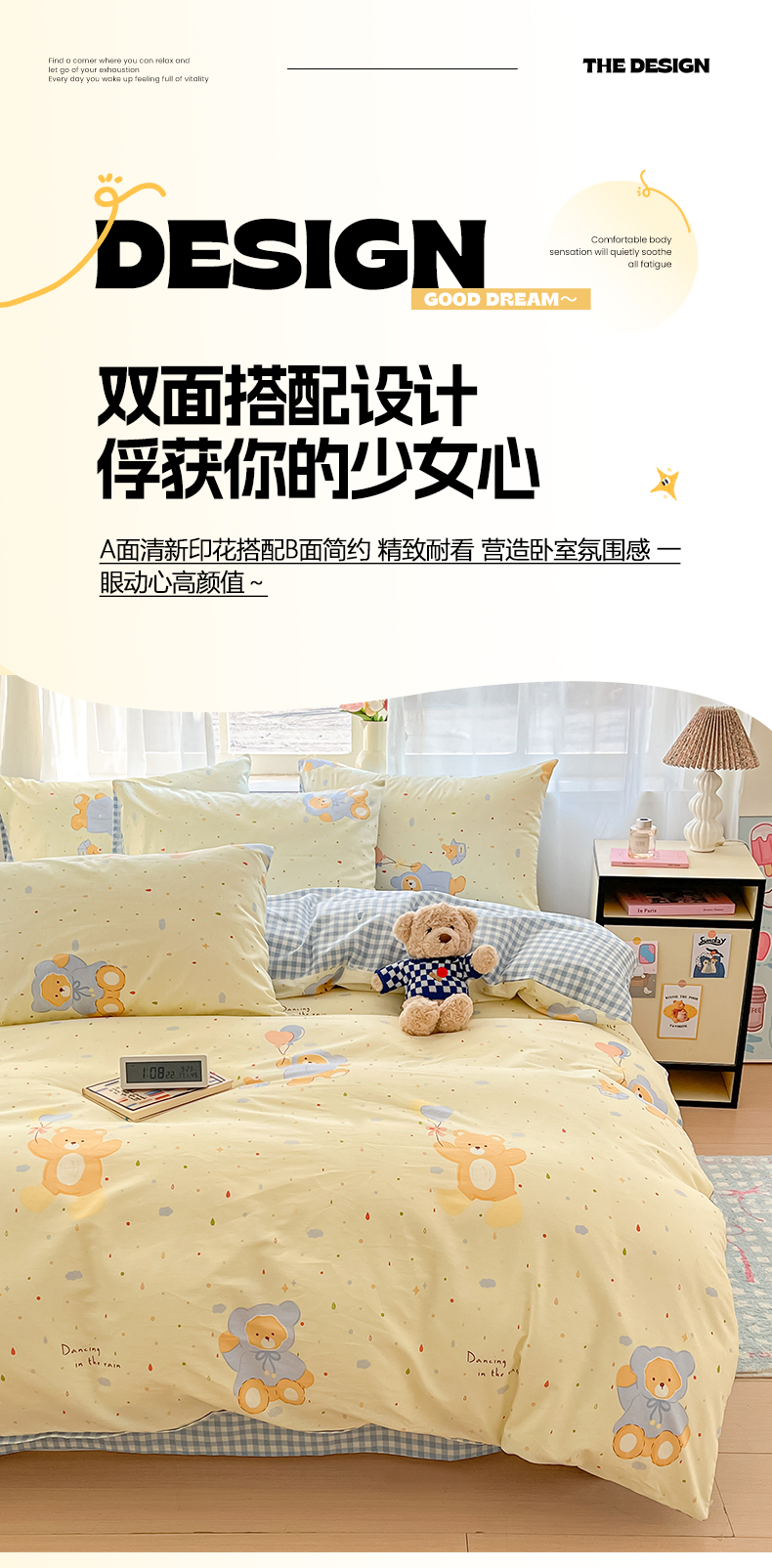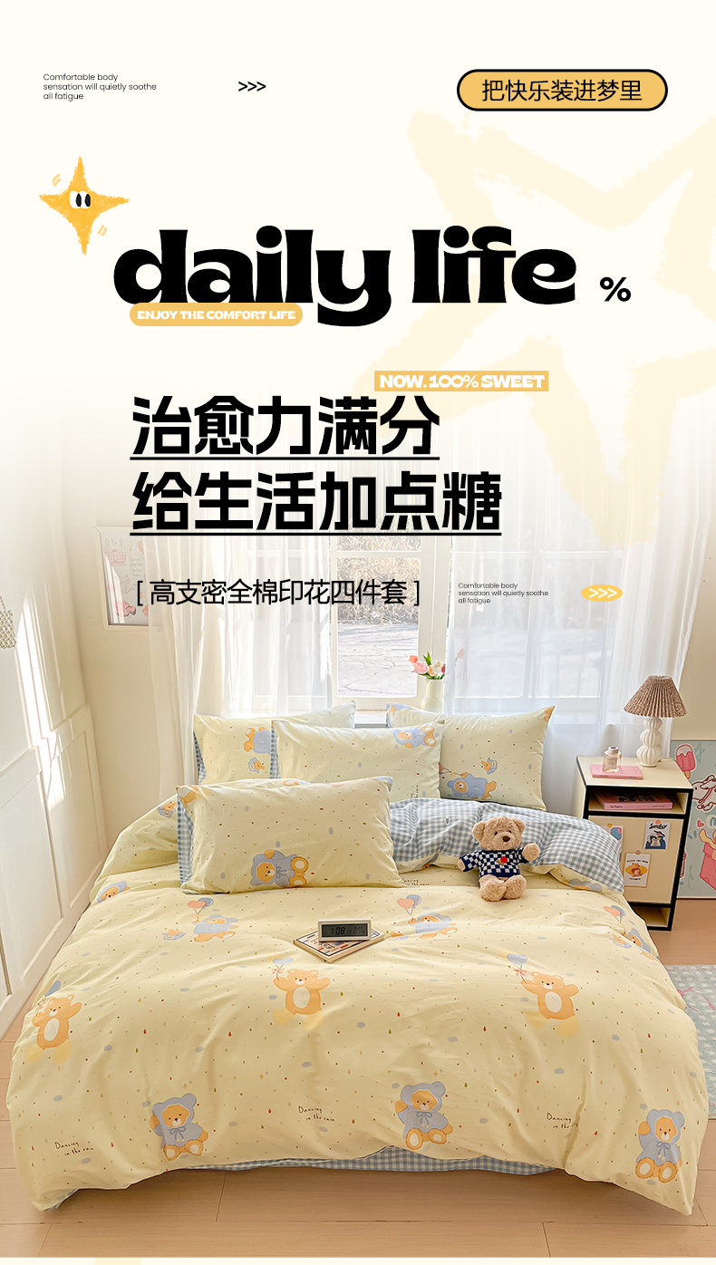 吉象家纺 2026新款高支密全棉印花四件套 点点小熊