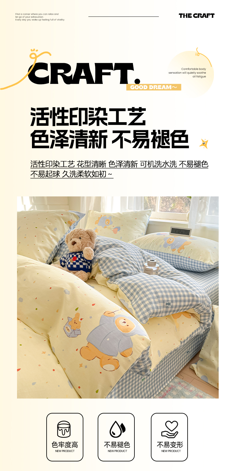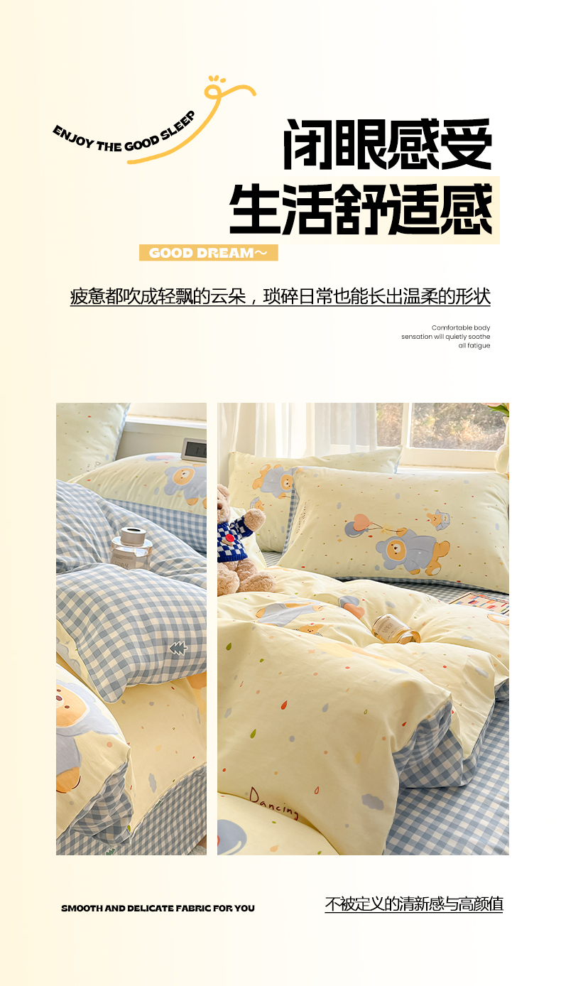 商品名称:吉象家纺 2026新款高支密全棉印花四件套 点点小熊