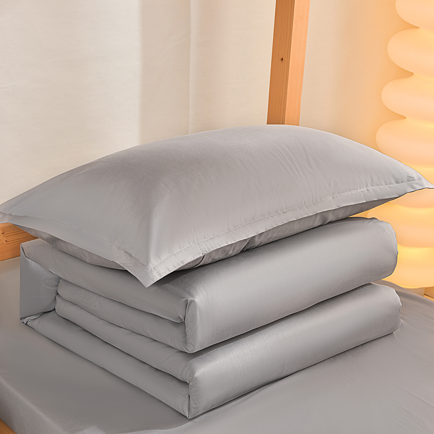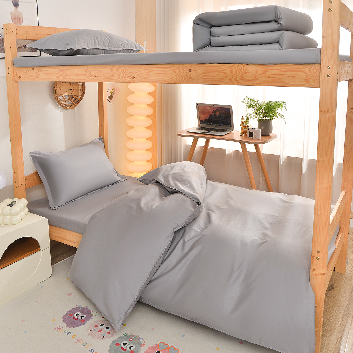 小雨家纺 2026新款13376宿舍纯棉40支纯色三件套 银河灰