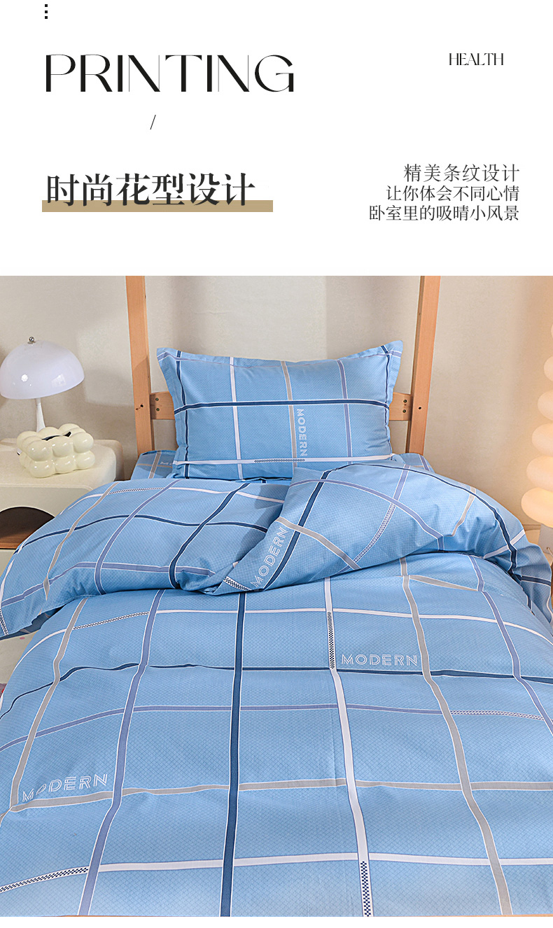 小雨家纺 2026新款13372宿舍纯棉40支印花三件套 哈尼-灰