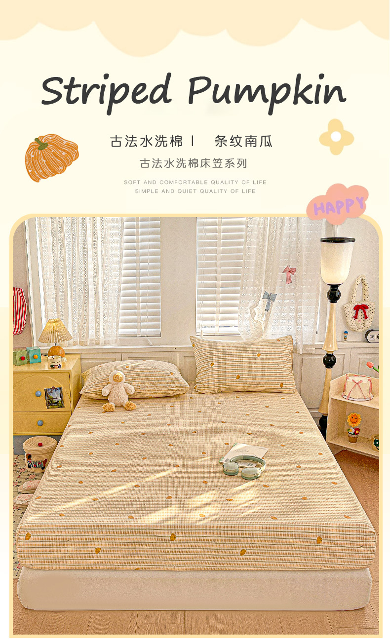 • 91家纺网 家纺一手货源 找家纺 (总)温眠家纺 2026新款古法水洗棉加厚高克重双层纱单床笠床笠单件单品床笠,条纹南瓜,彩波波,蛋糕小猫,扶桑花未落,花韵,绮梦花间,素影,挽星入梦,汪星人,星星人,樱之桃桃,云间花述,织梦,紫菀