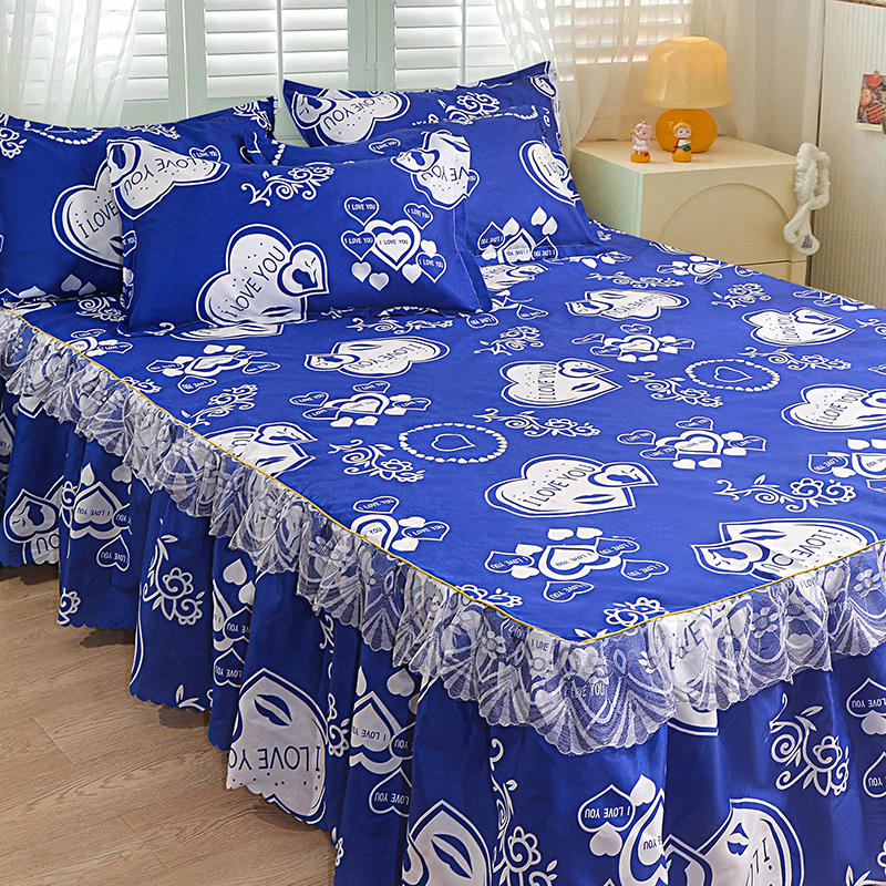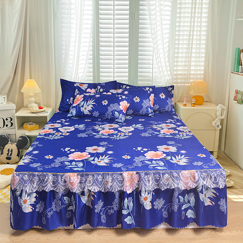小雨家纺 2026新款亲肤芦荟棉外贸蕾丝花边床裙 简约沙龙