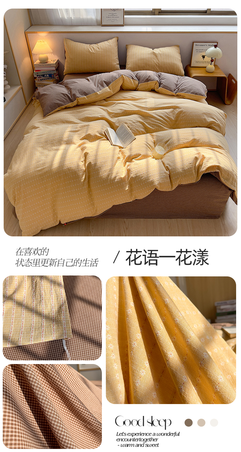 当前位置: 91家纺网 > 商品网购 > 床品套件 > 四件套 > 全棉普通四件套 > 炫拼家纺 2026新款A类全棉色织提花40支水洗棉四件套-花语系列 花语一伊莫