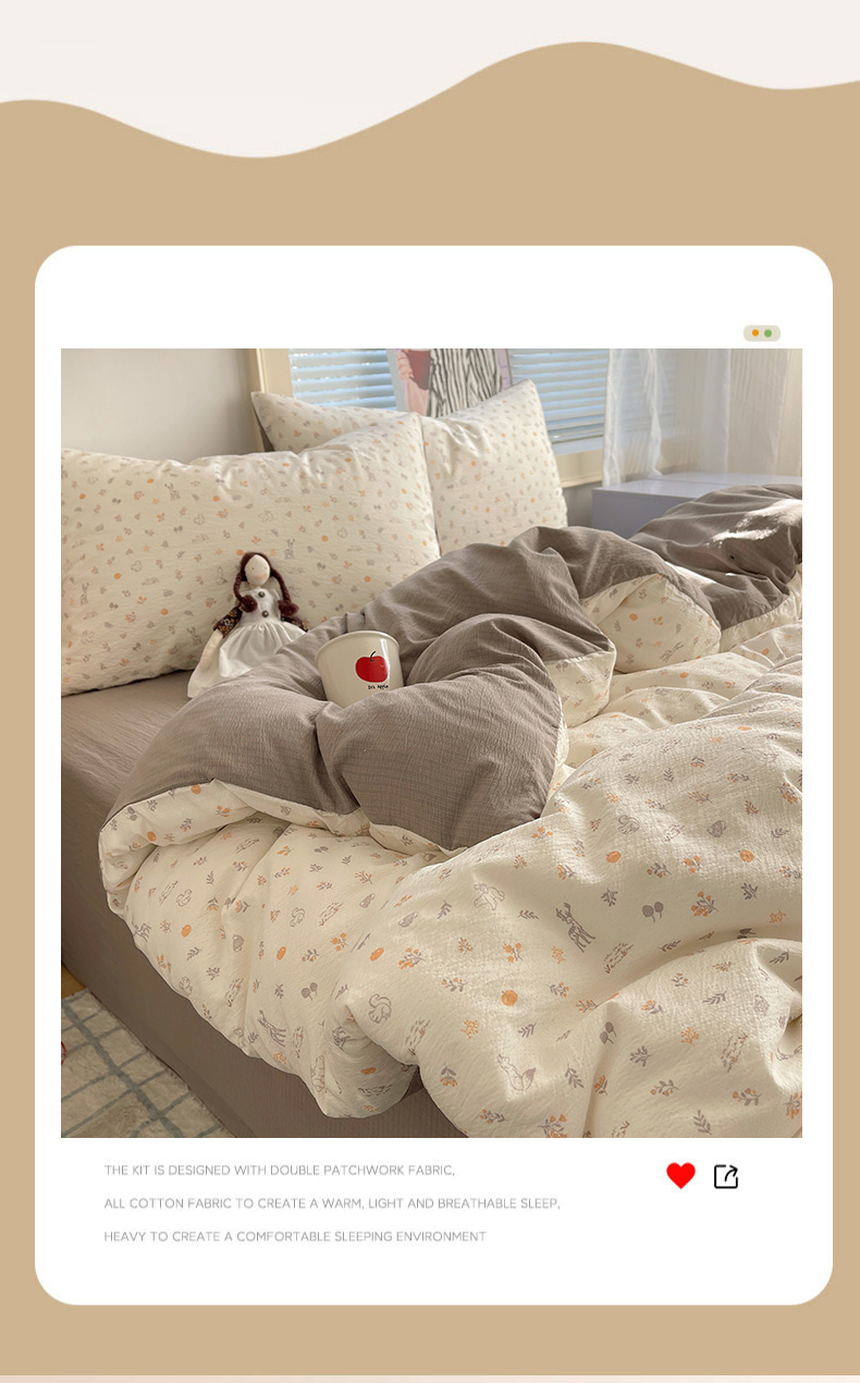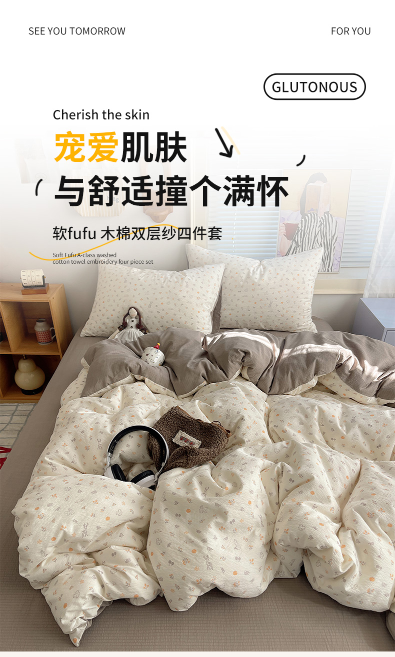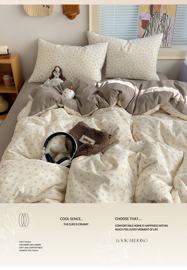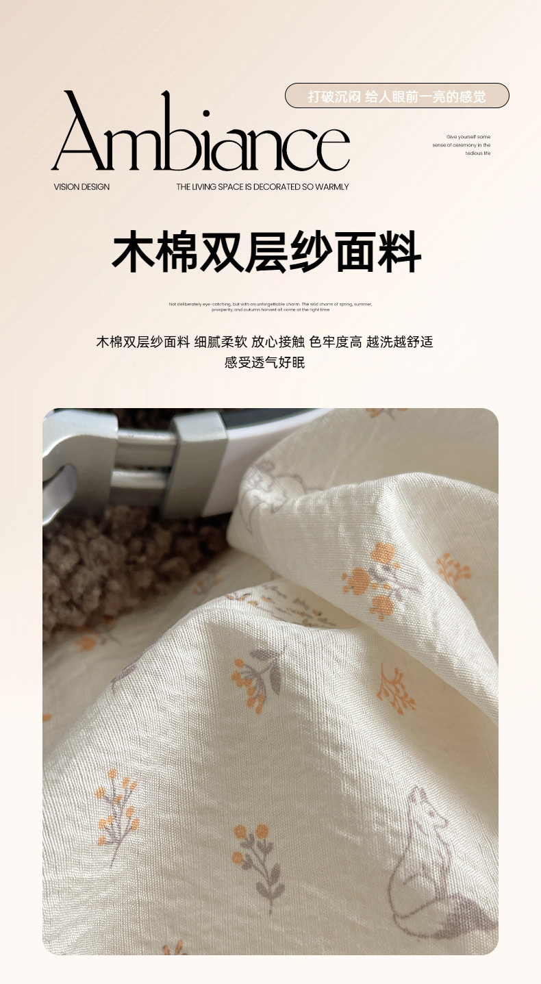 当前位置: 91家纺网 > 商品网购 > 床品套件 > 四件套 > 双层纱四件套 > 繁花家居 2026新款木棉双层纱四件套 木与鹿眠