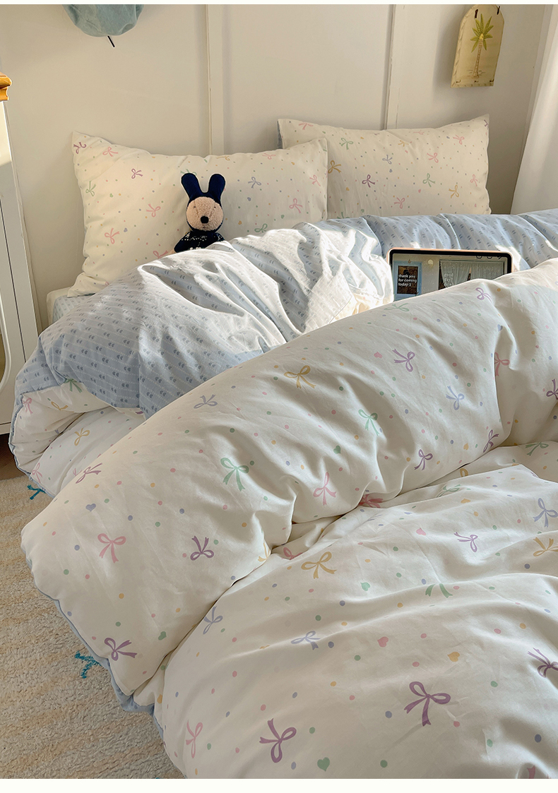 瑞莱 2026新款全棉印花单被套系列 七彩蝴蝶结