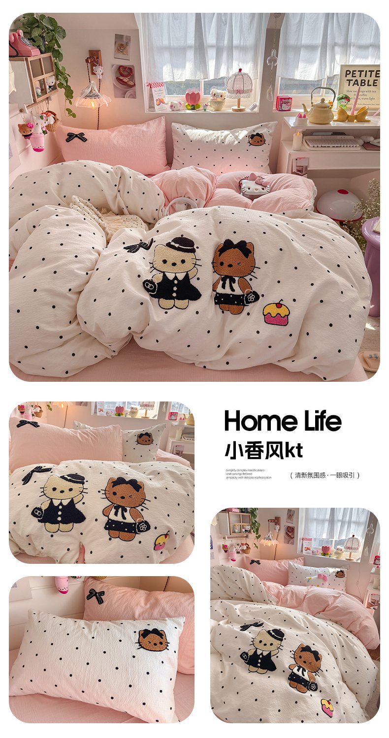 (总)海岛哥哥 2025新款高克重(110克)云感提花皱皱纱正版三丽鸥四件套系列,彩绘小奶猫,粉樱凯蒂,木马美乐蒂,奶芙KT,时尚库洛米,甜蜜电话-粉,甜蜜电话-蓝,条纹KT,童趣美乐蒂
