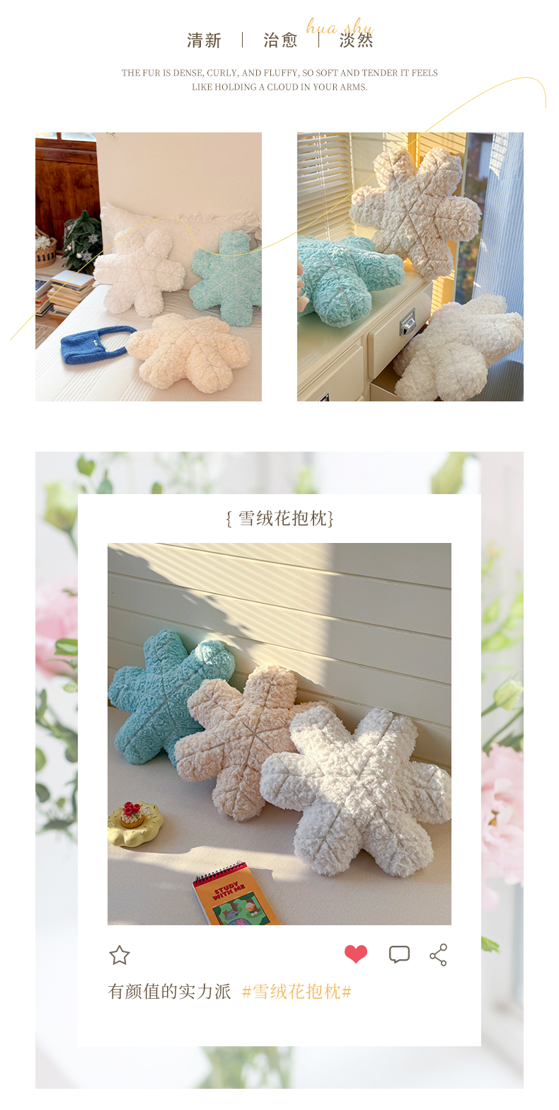 (总)美茉家居 2026新款兔毛刷花雪绒花抱枕,冰蓝,米白,雪白