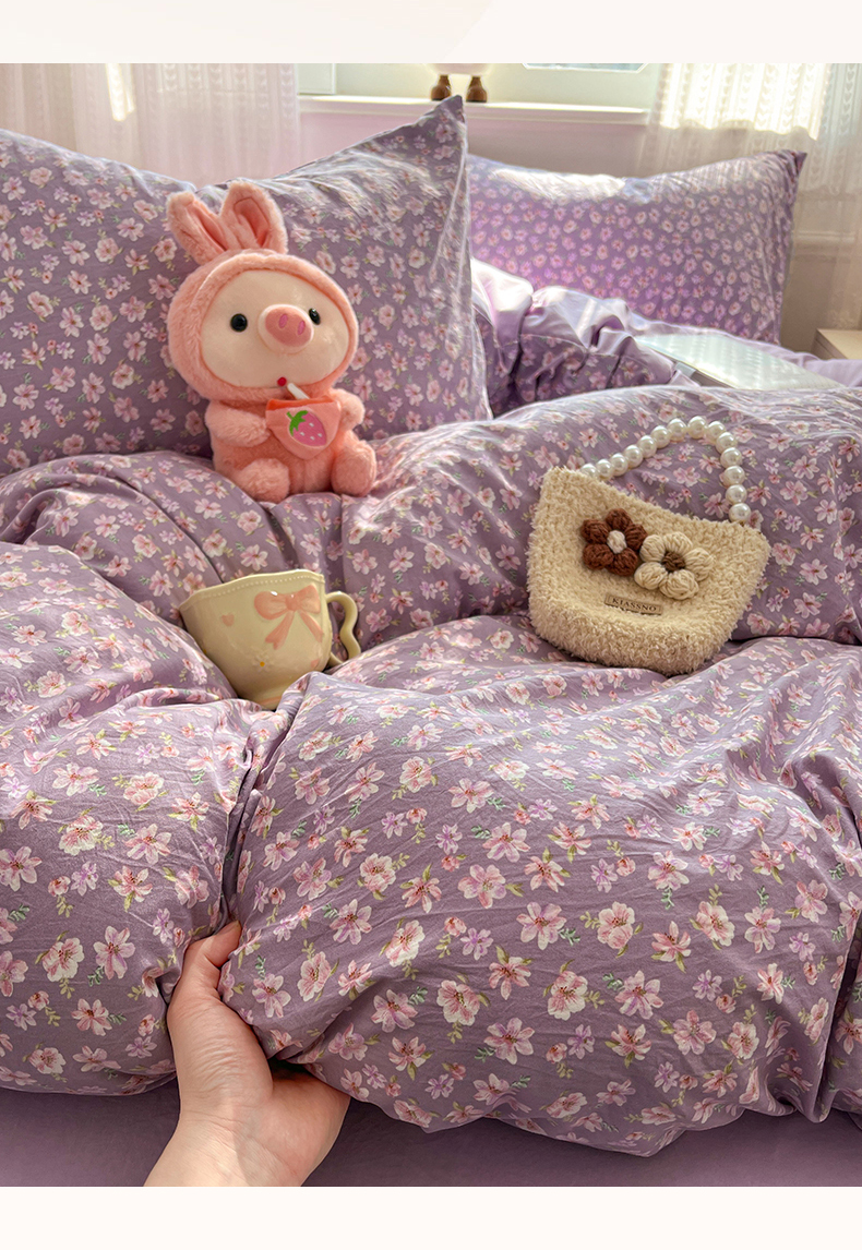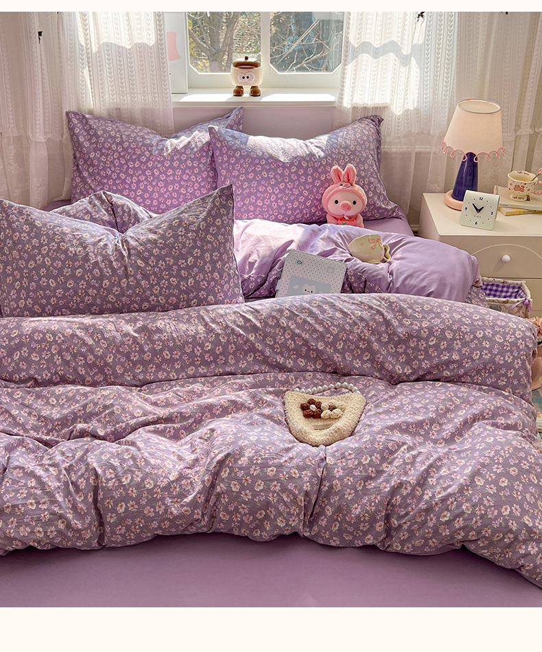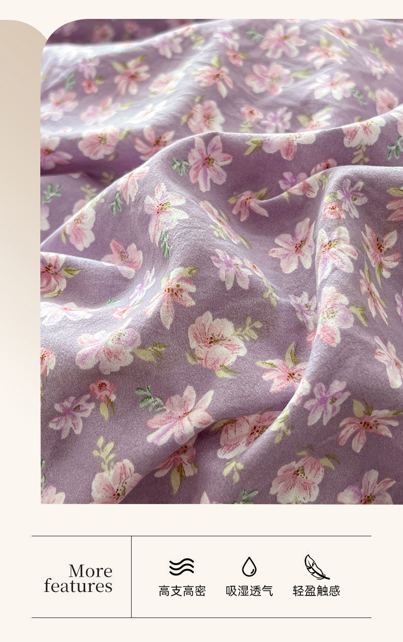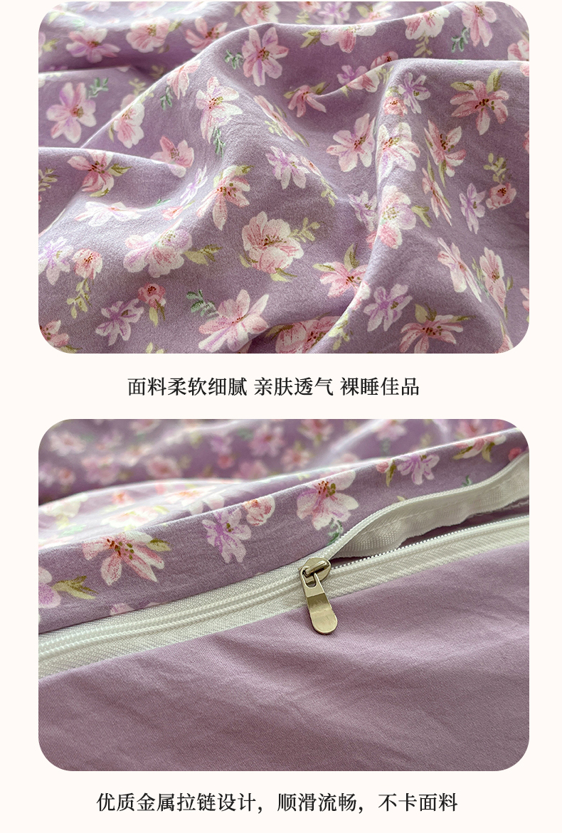 当前位置: 91家纺网 > 商品网购 > 床品套件 > 四件套 > 水洗棉四件套 > 优尚佳生活馆 【提供买家秀】2026新款加厚水洗仿棉A类印花四件套 紫樱漫庭