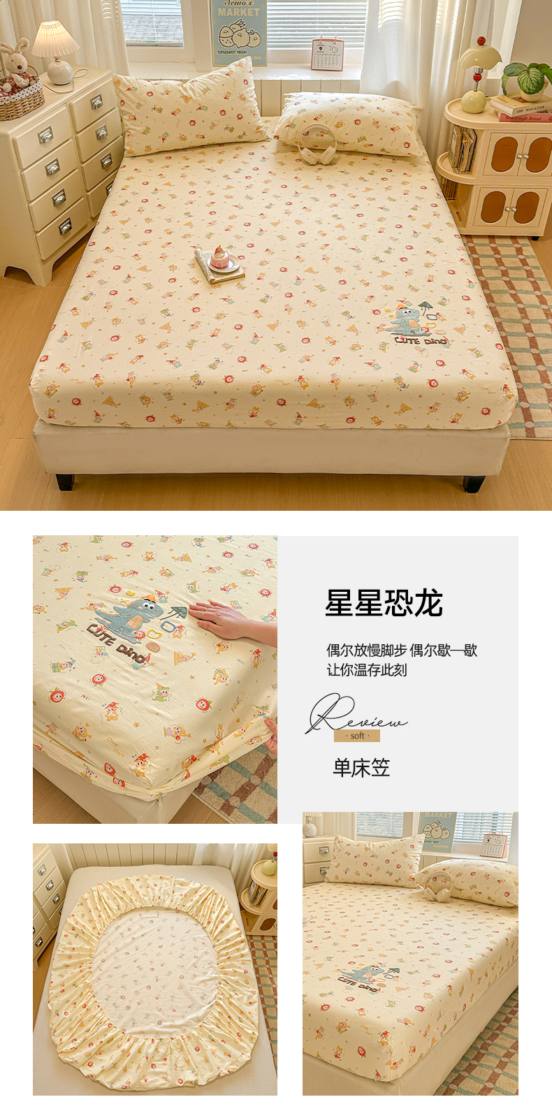 (总)易辰美 2026新款13372全棉纯棉印花卡通床笠单品床笠单件单床笠,叉鱼小狗,星星恐龙,小飞象,三只兔子,趴趴熊,考拉,卡皮巴拉,红蓝熊猫,月亮女孩(二),月亮女孩(一)