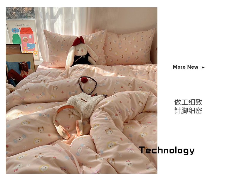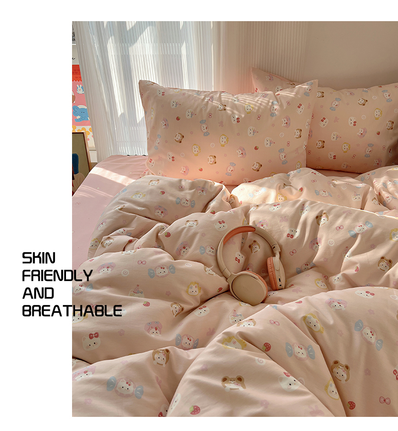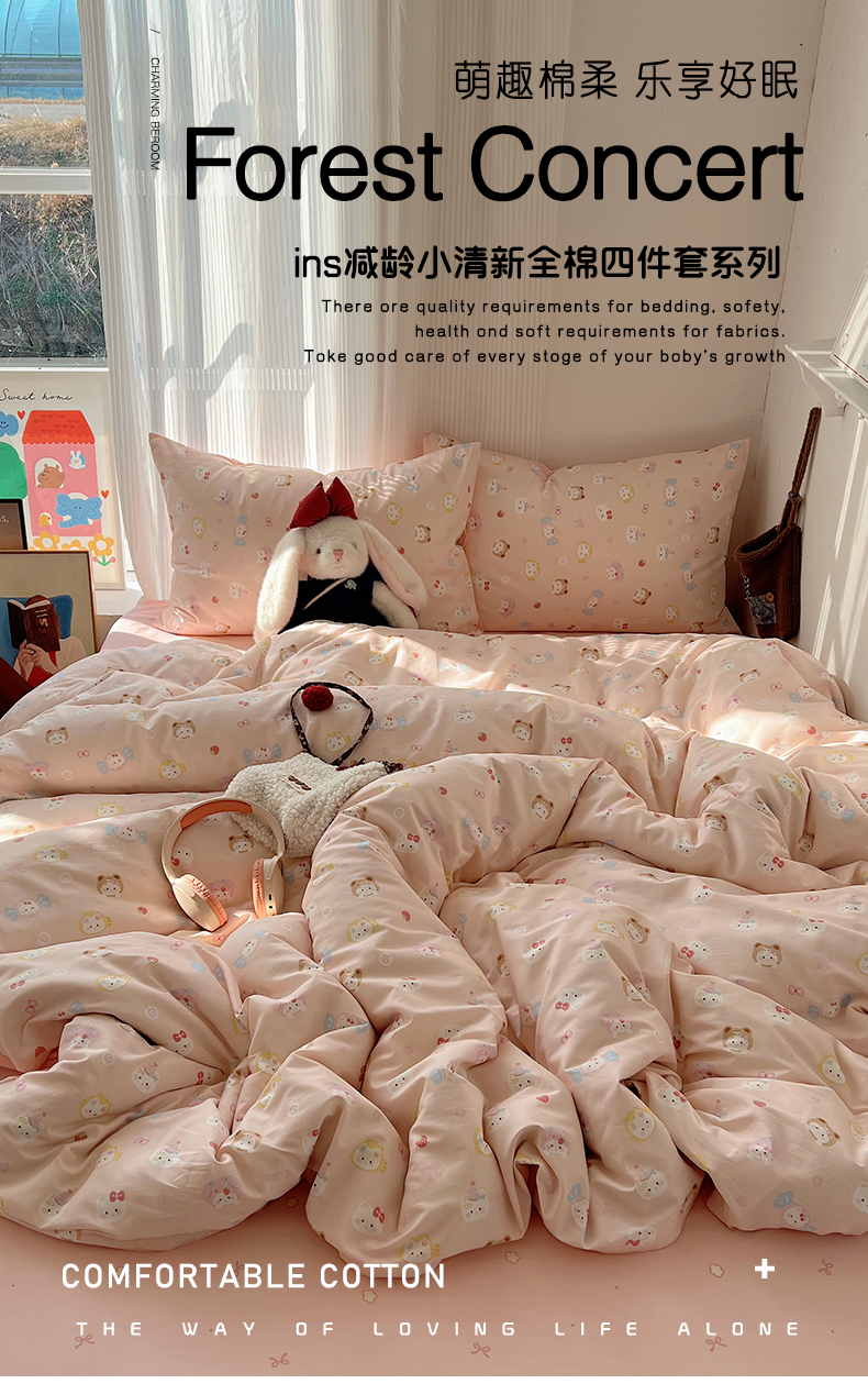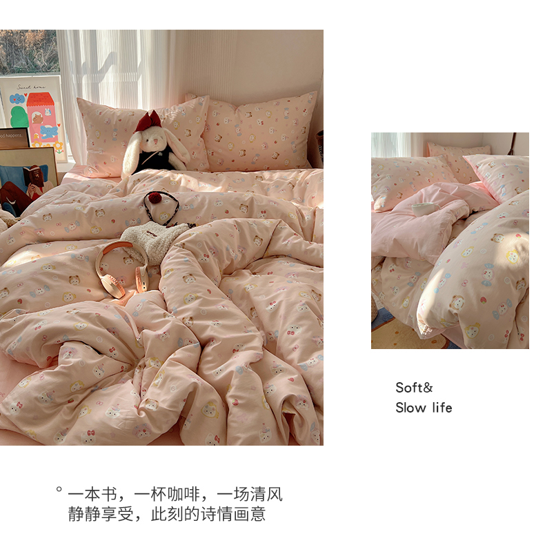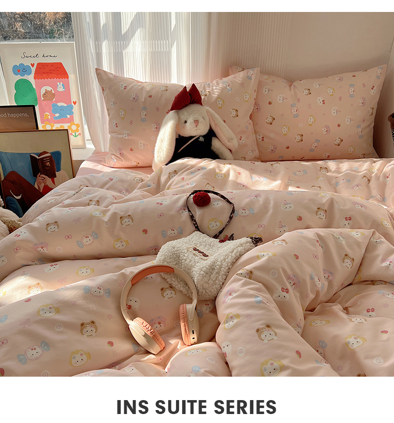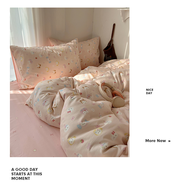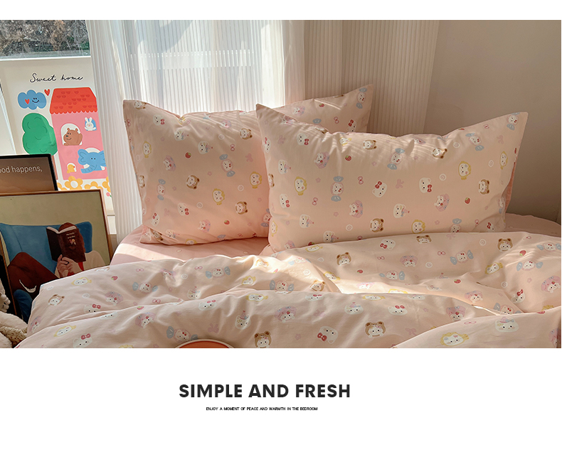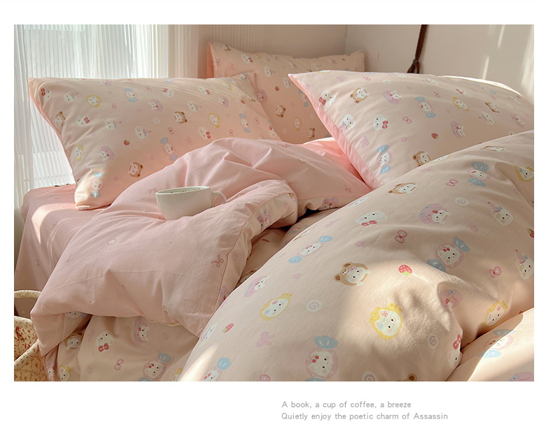 当前位置: 91家纺网 > 商品网购 > 床品套件 > 四件套 > 全棉普通四件套 > XIWEN-希文家纺 2026春夏新款40支全棉13372卡通四件套 甜酱小猫-粉