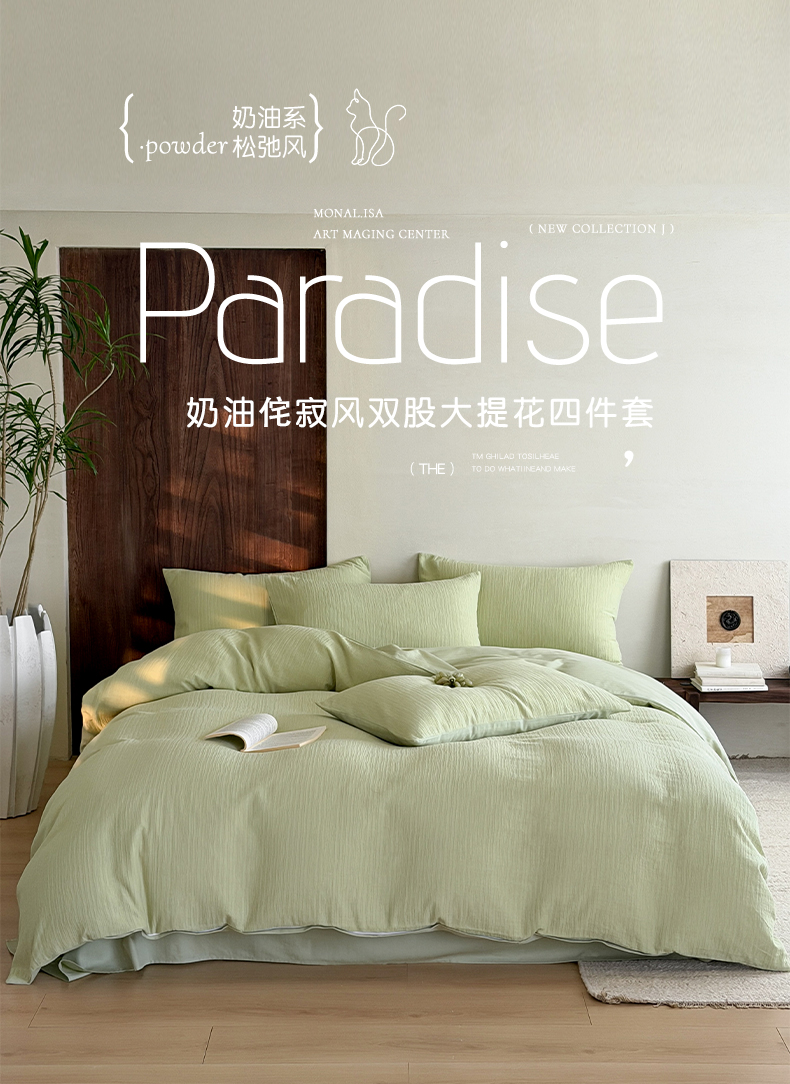 当前位置: 91家纺网 > 商品网购 > 床品套件 > 四件套 > 全棉普通四件套 > 静家居-简约原创家纺 2026新款奶油叱咤风60s全棉纯棉厚织提花四件套轻屿 轻屿-青萝