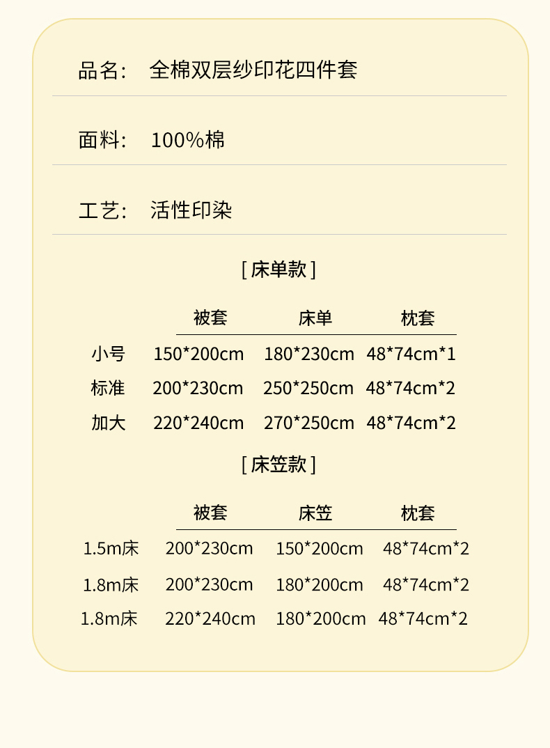 1.8m床单款四件套-被套:200*230cm | ¥150.00 |