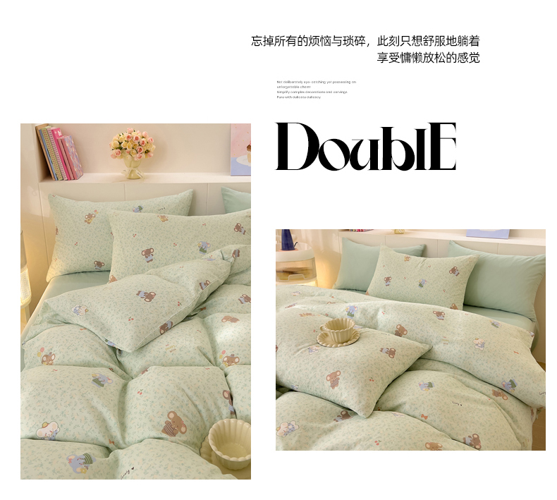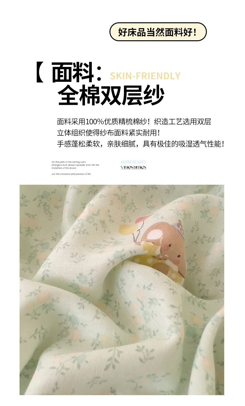 当前位置: 91家纺网 > 商品网购 > 床品套件 > 四件套 > 双层纱四件套 > DoDo 兜兜 2026新款全棉纯棉小温暖双层纱四件套【可定做尺寸】幸福小象-绿