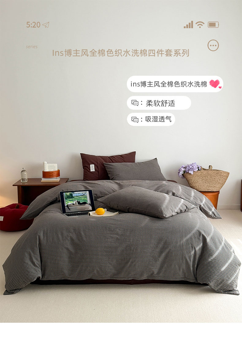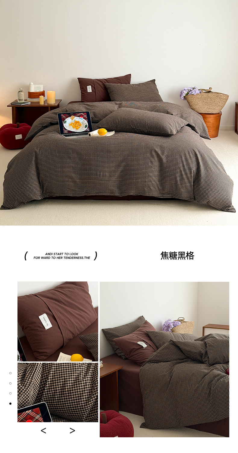 当前位置: 91家纺网 > 商品网购 > 床品套件 > 四件套 > 全棉普通四件套 > 十里居 2026新款lns博主风全棉纯棉色织水洗棉四件套 焦糖黄格