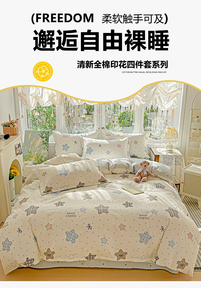 当前位置: 91家纺网 > 商品网购 > 床品套件 > 四件套 > 全棉普通四件套 > 恩泽家纺 2026春夏新款全棉纯棉12868印花四件套(提供买家秀,预留缩水率) 星动情节