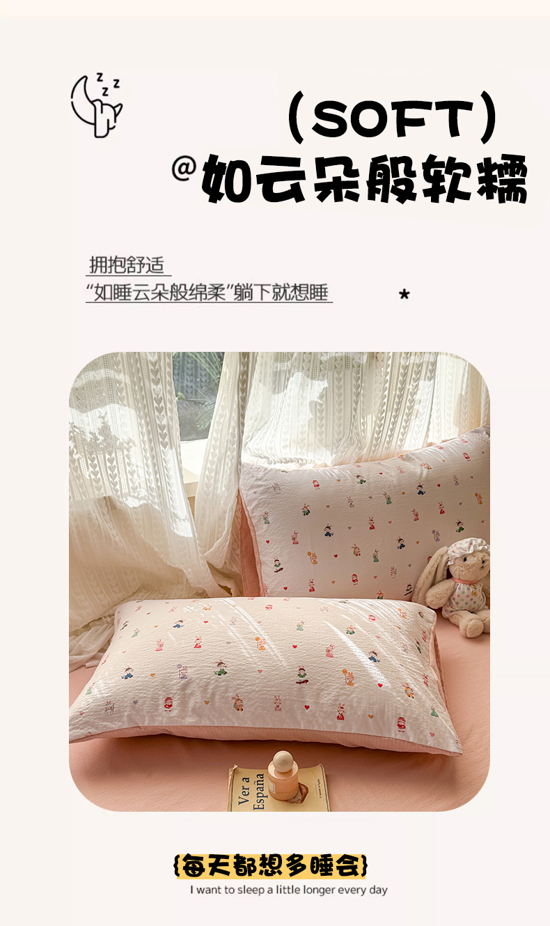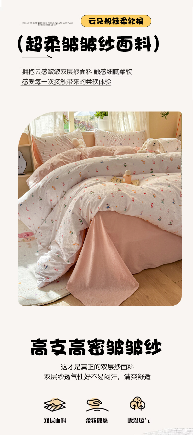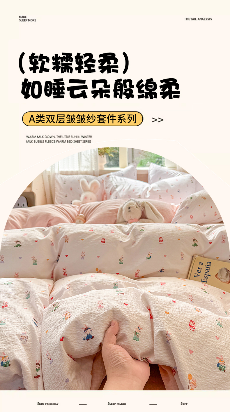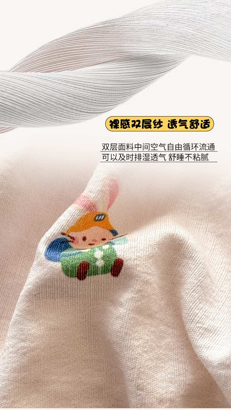 当前位置: 91家纺网 > 商品网购 > 床品套件 > 四件套 > 双层纱四件套 > 丽美人家纺 2026新款A类皱皱纱双层印花四件套 桃心萌兔集
