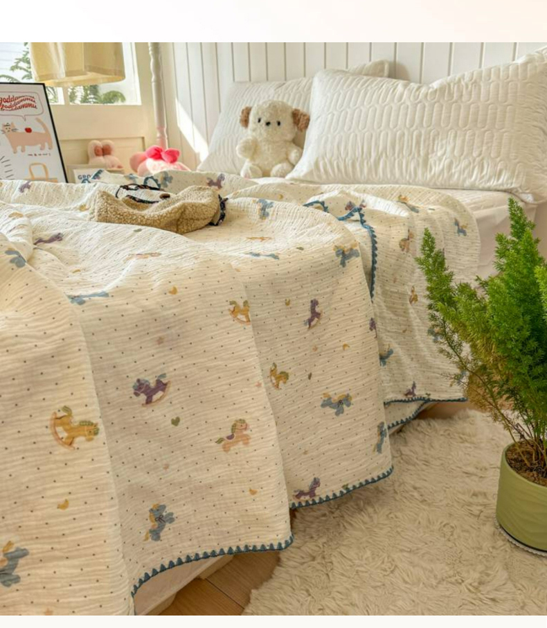 十里居 2026新款A类母婴级全棉皱皱双层纱多功能盖毯 皱皱纱-蓝色小兔