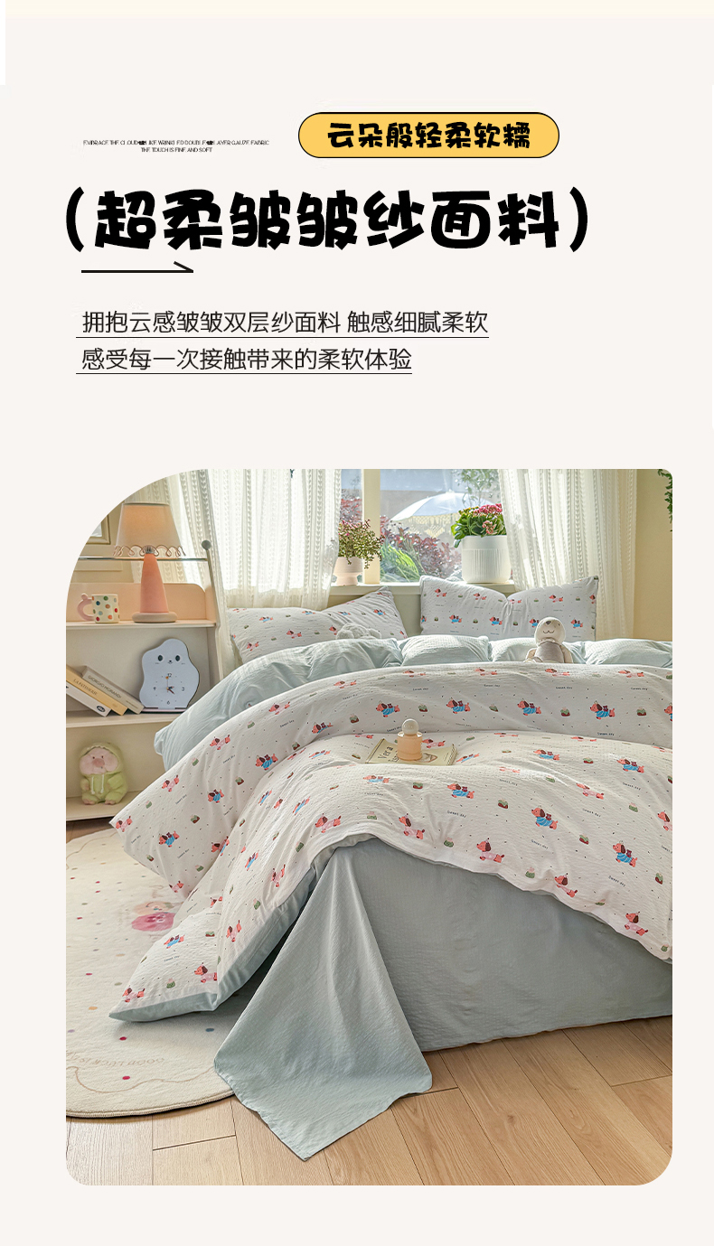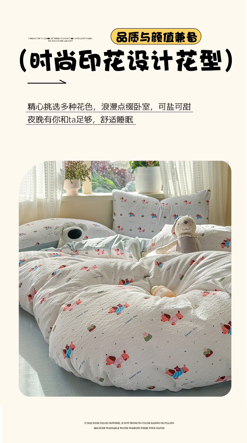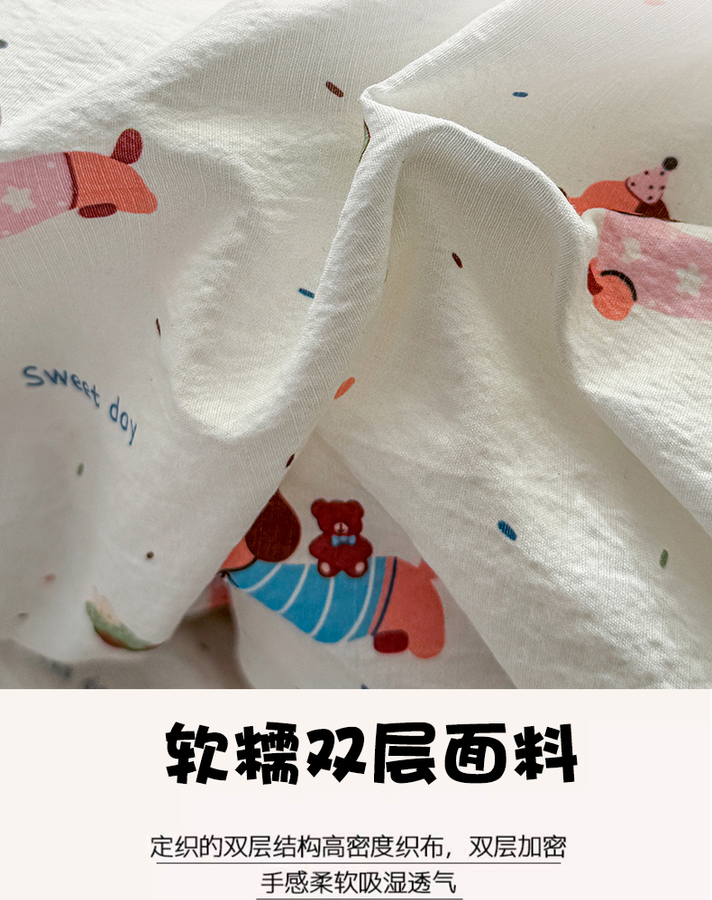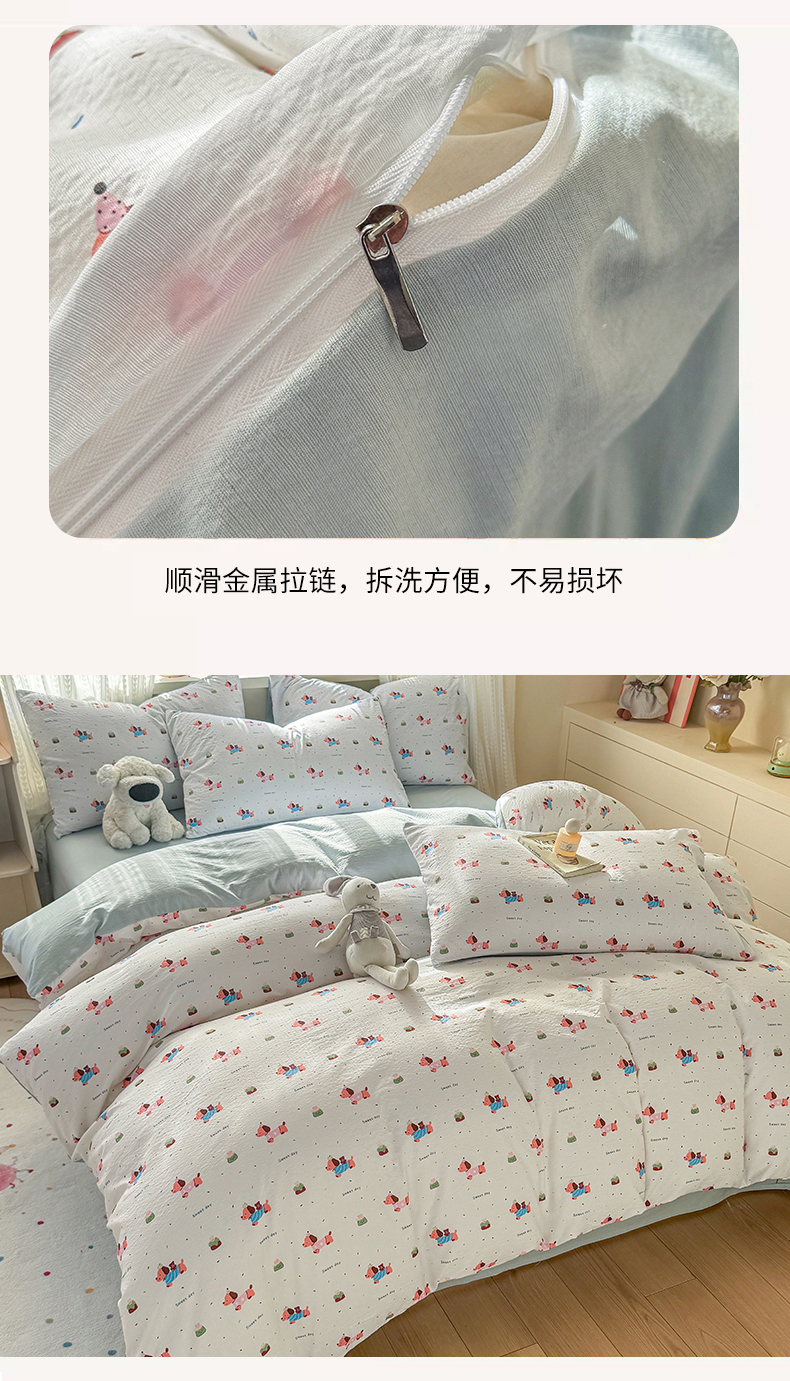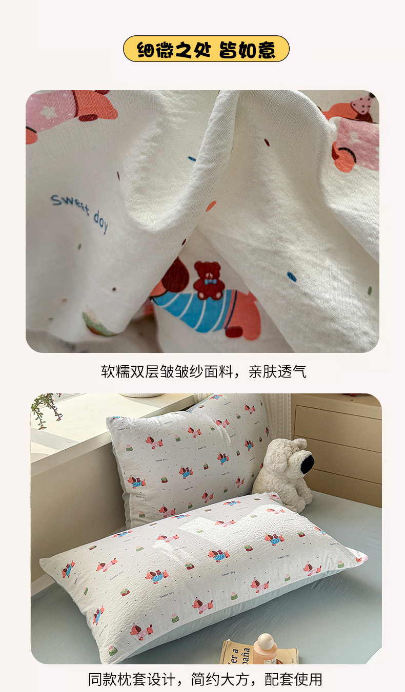 商品名称:丽美人家纺 2026新款A类皱皱纱双层印花单被套 BT洛洛小狗