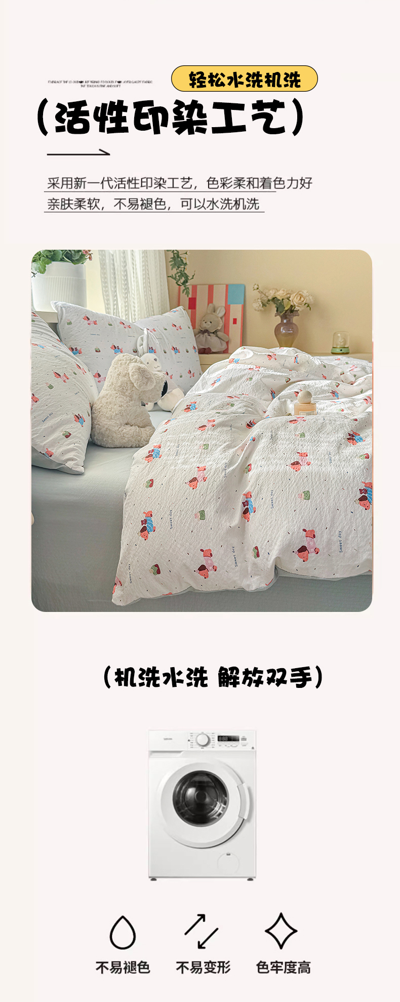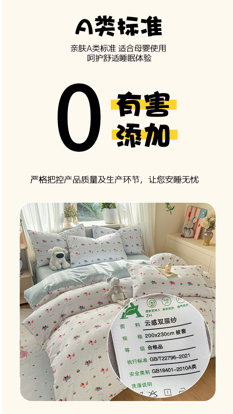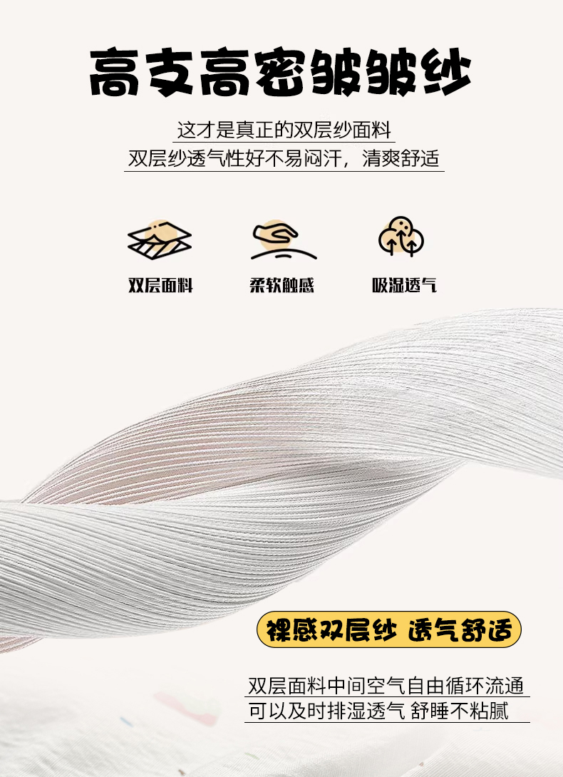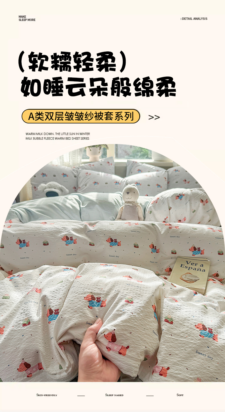 商品名称:丽美人家纺 2026新款A类皱皱纱双层印花单被套 BT洛洛小狗