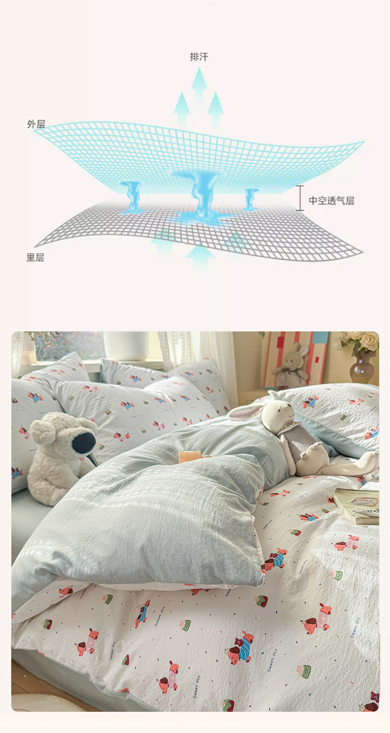 丽美人家纺 2026新款A类皱皱纱双层印花单被套 BT洛洛小狗