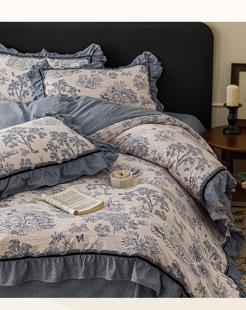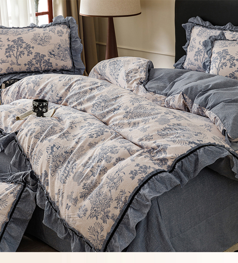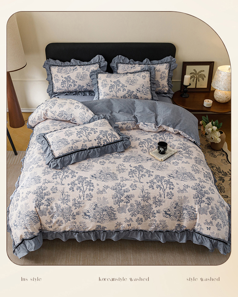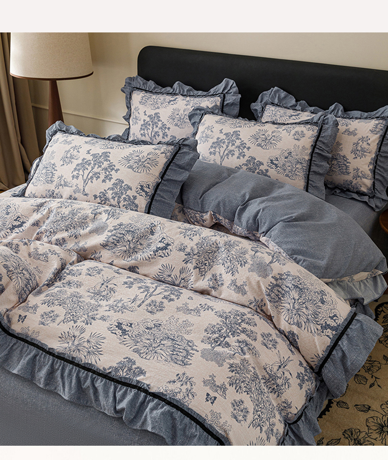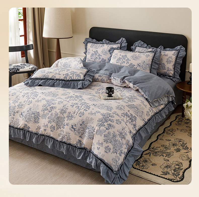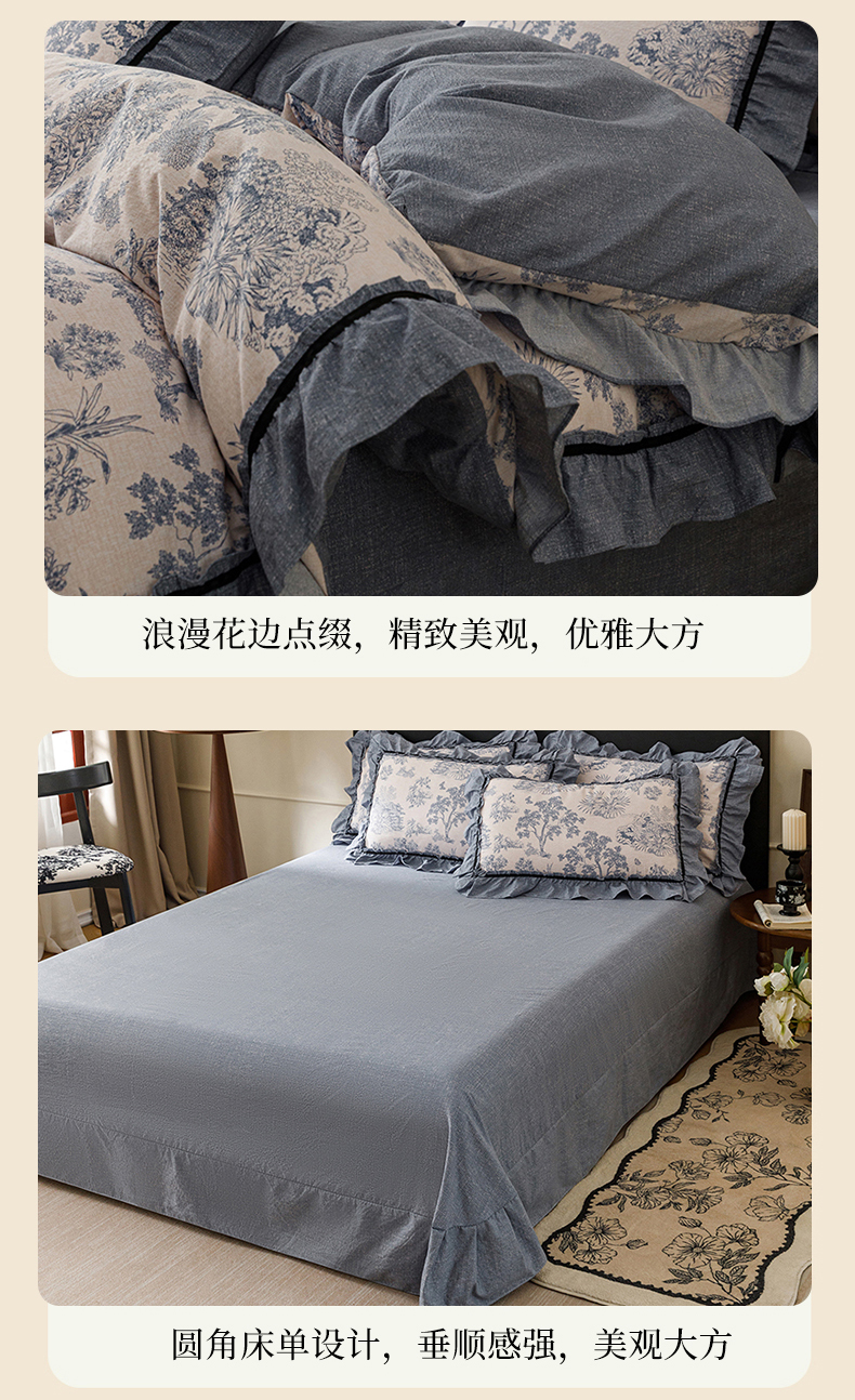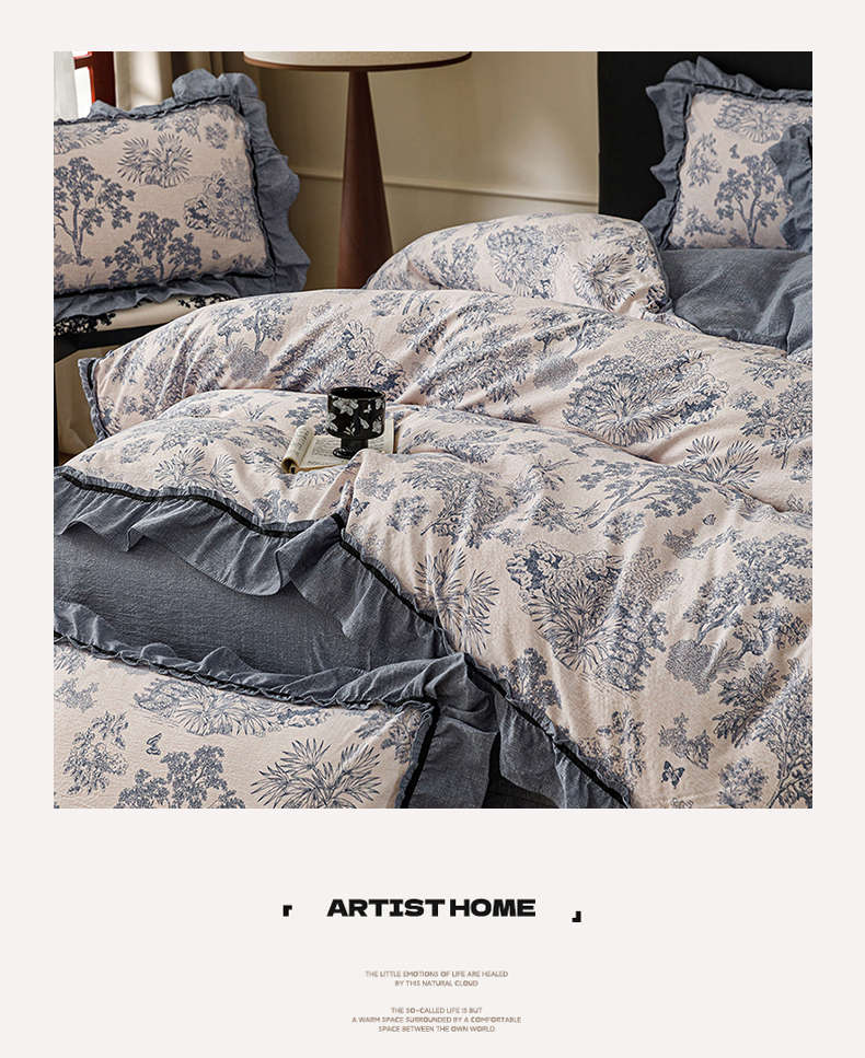 商品名称:悦然毛巾被 2026新款原麻水洗提花四件套 蓝花雾影