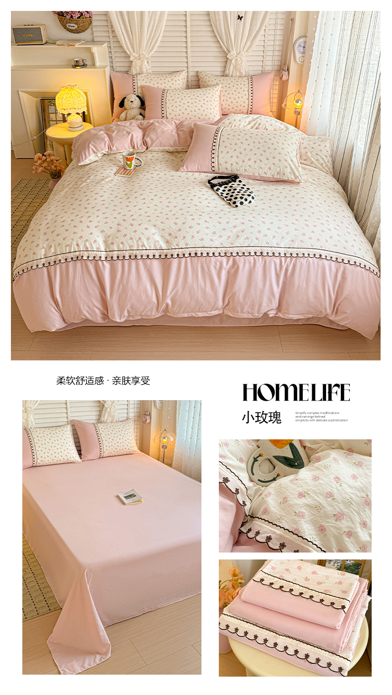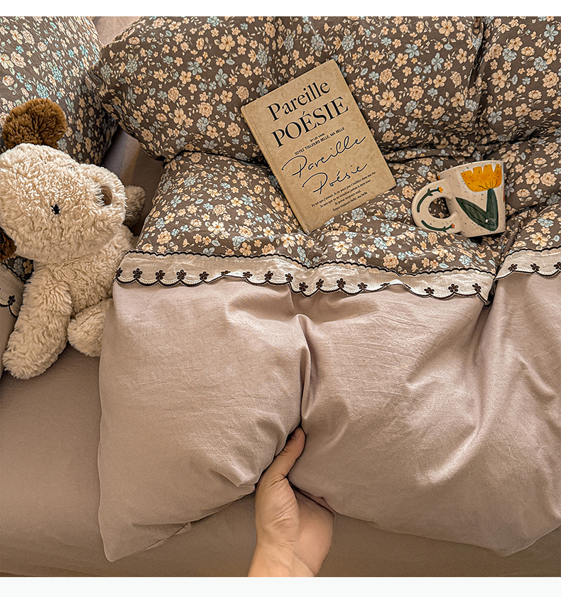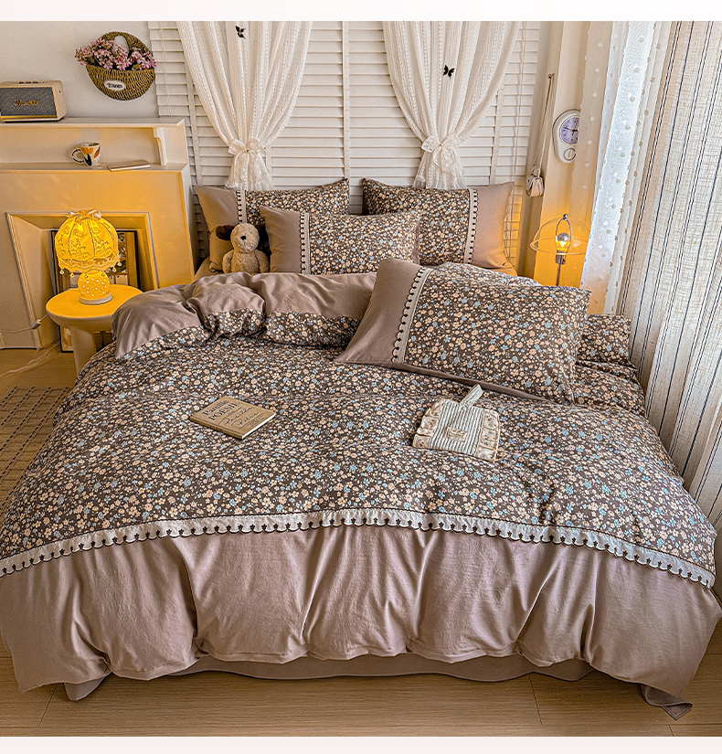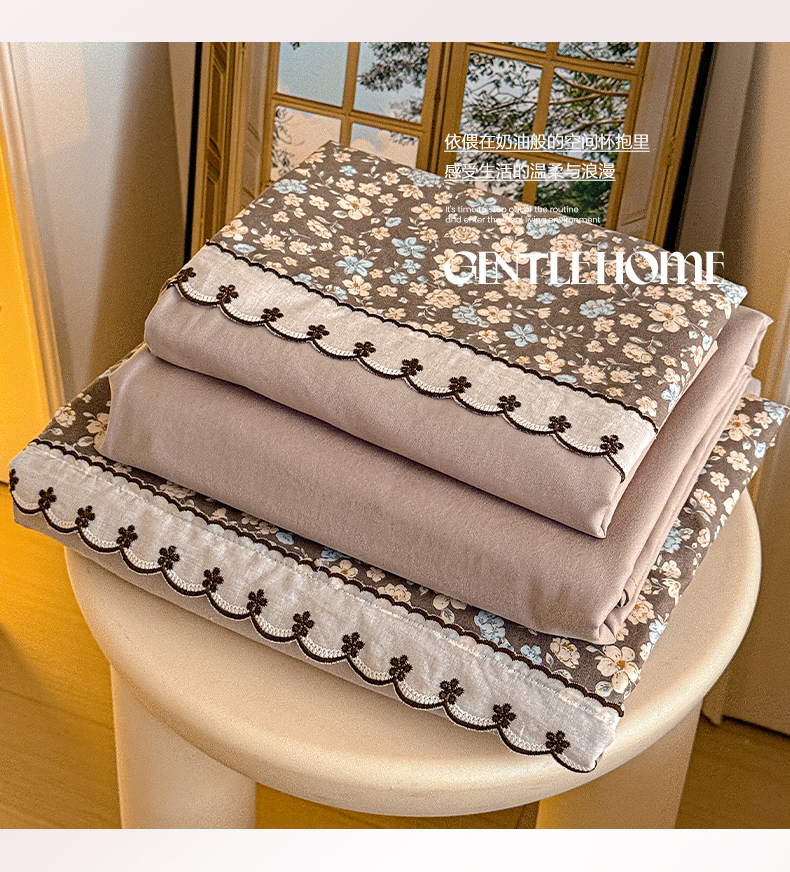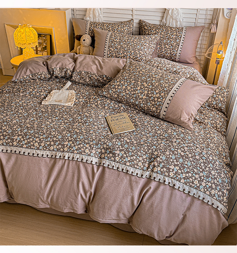 当前位置: 91家纺网 > 商品网购 > 床品套件 > 四件套 > 其它四件套 > 鑫利来家纺 2026新款古法水洗棉法式花边四件套甄选纯棉花边拼接款四件套印花被套床单单品四件 漫野