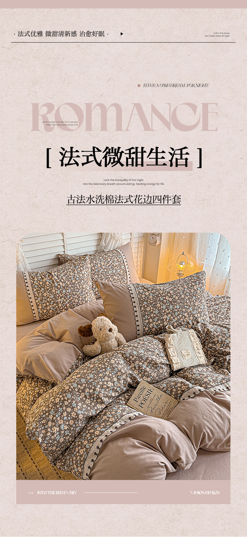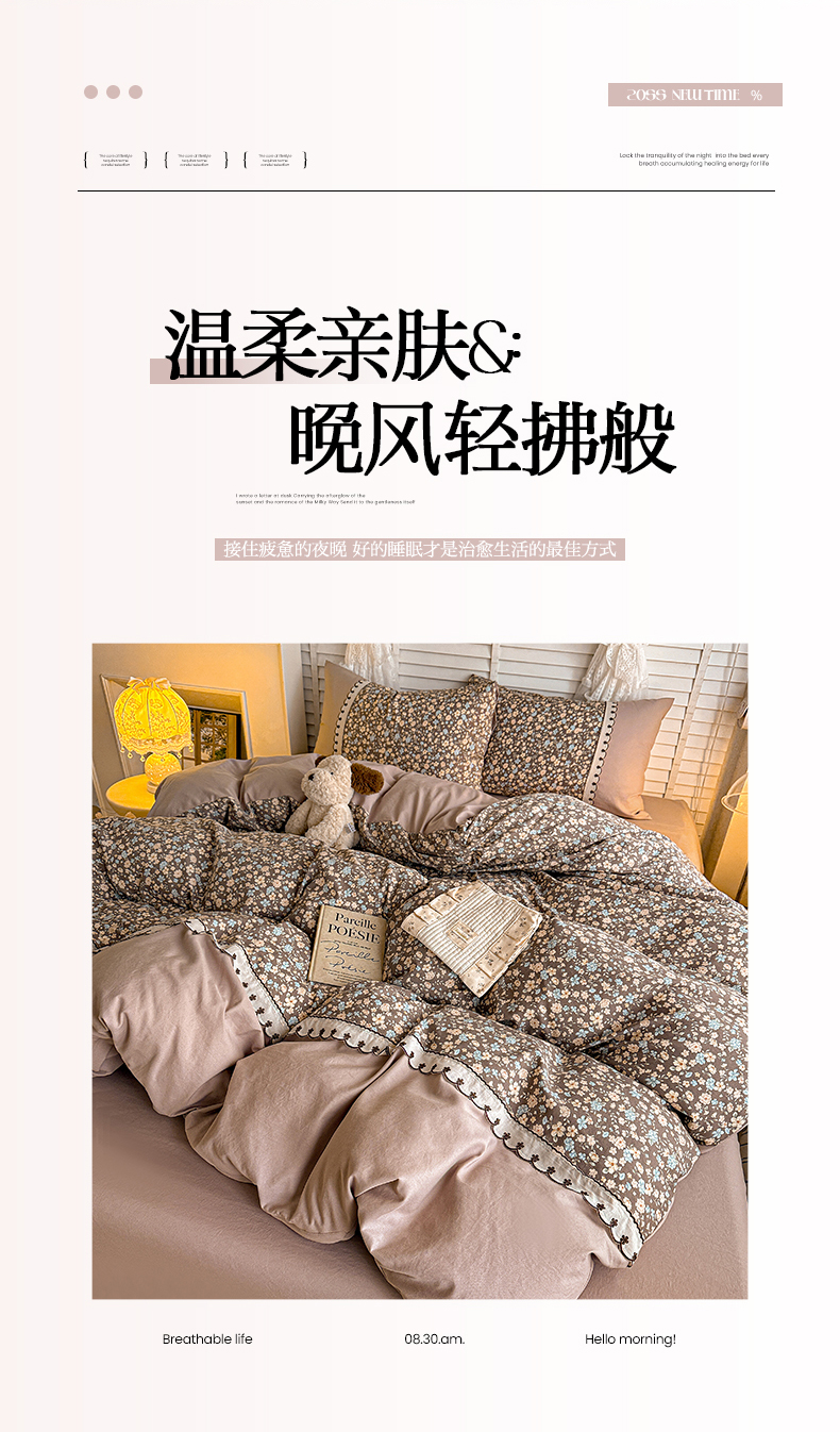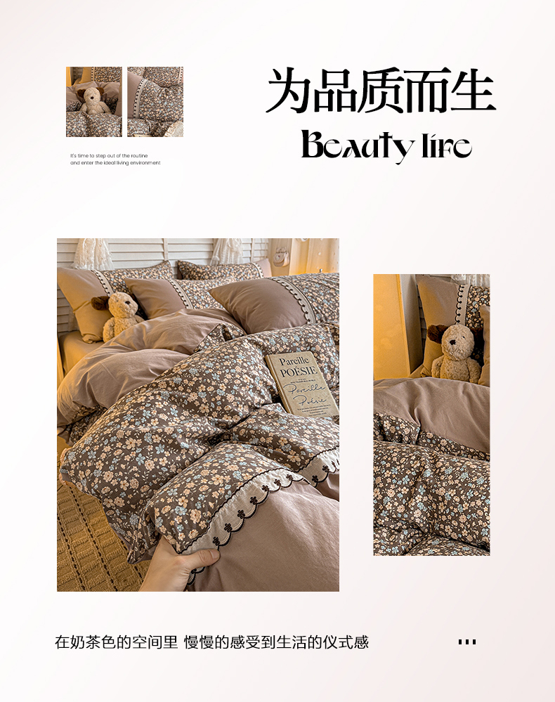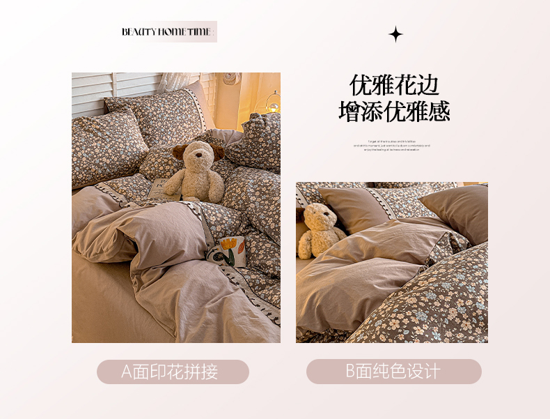 当前位置: 91家纺网 > 商品网购 > 床品套件 > 四件套 > 其它四件套 > 鑫利来家纺 2026新款古法水洗棉法式花边四件套甄选纯棉花边拼接款四件套印花被套床单单品四件 漫野