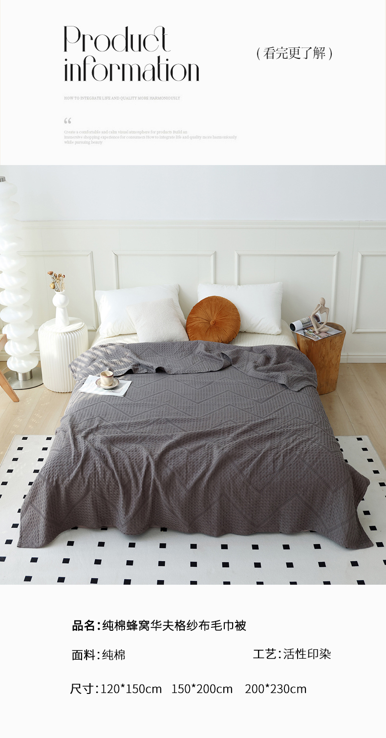 被子 > 夏被 > 朴尔家纺-毛巾被 2026新款全棉纯棉摩拉山峦风立体透气蜂窝华夫格纱布毛巾被-朴尔经典款常年备货 波浪华夫格-浅蓝