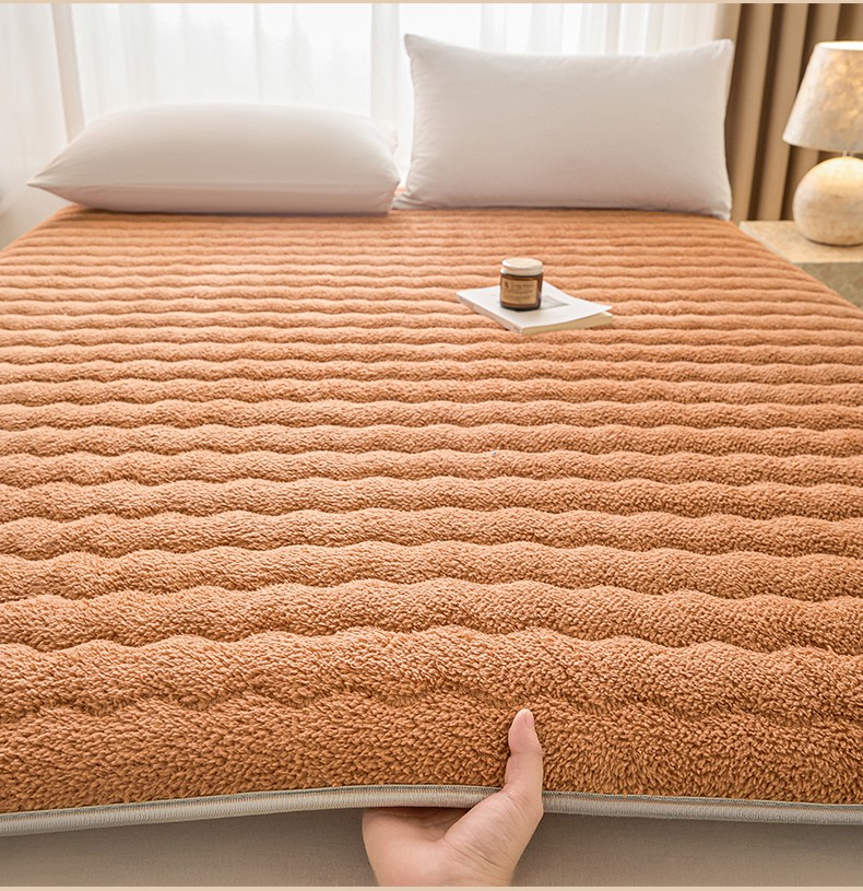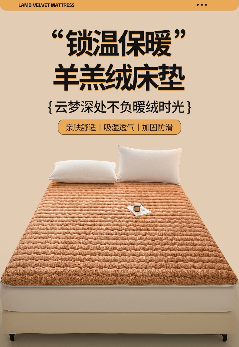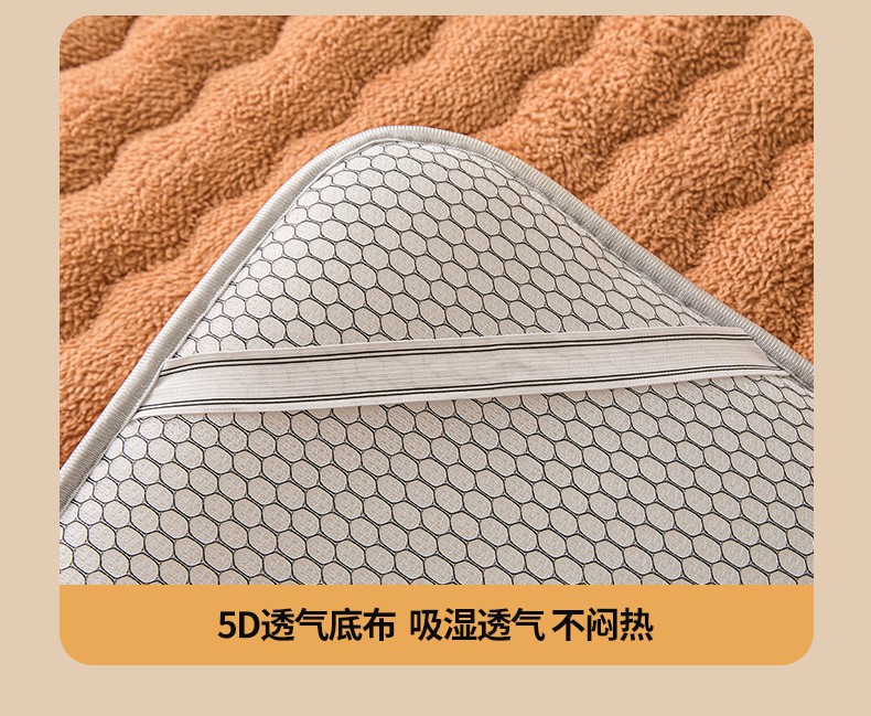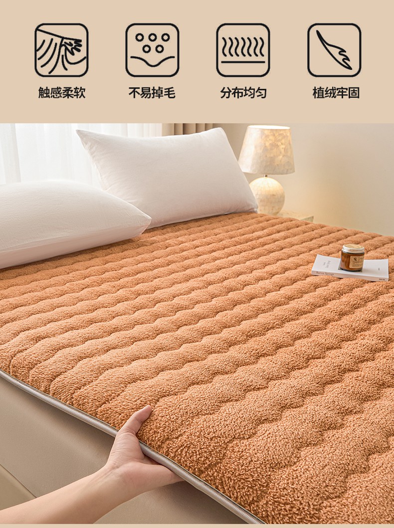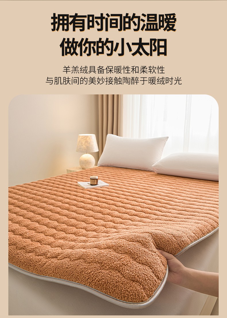 月茶家纺 2026新款单边羊羔绒床垫垫子 驼色
