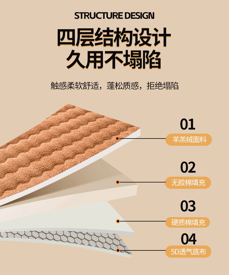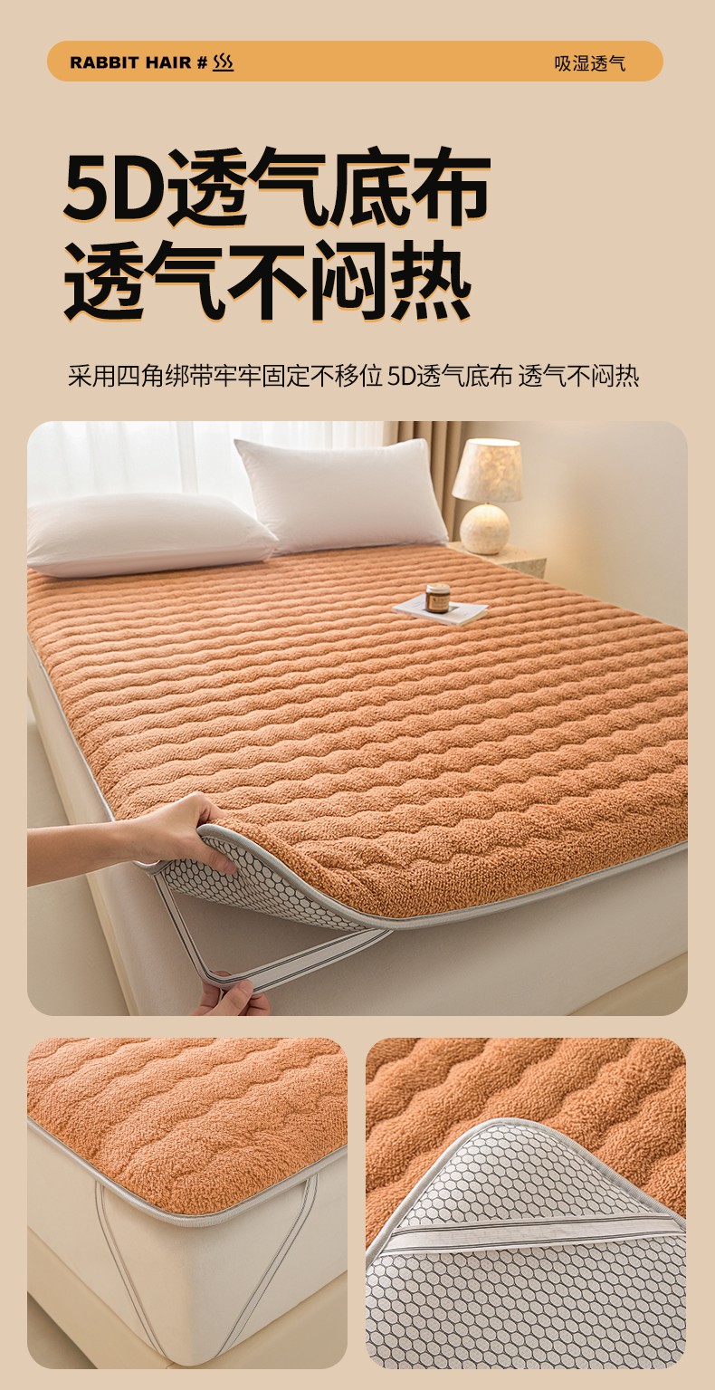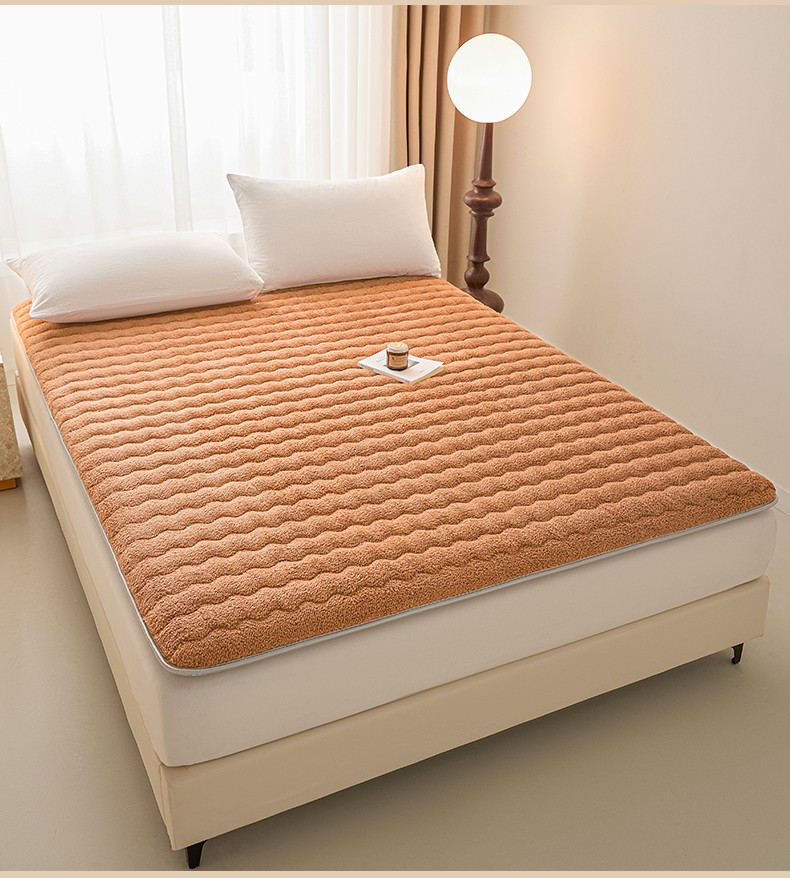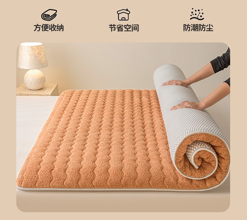 月茶家纺 2026新款单边羊羔绒床垫垫子 驼色