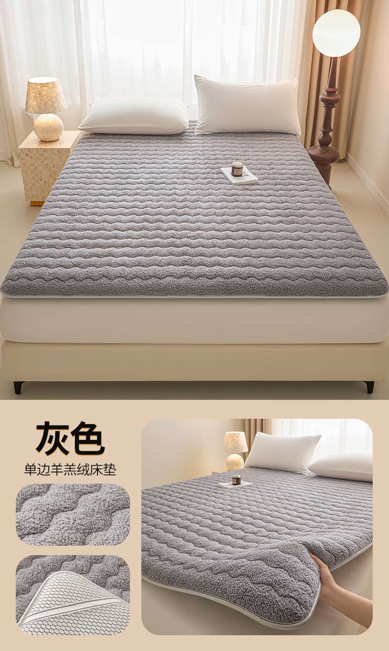 (总)月茶家纺 2026新款单边羊羔绒床垫垫子,白色,灰色,咖色,蓝色,驼色