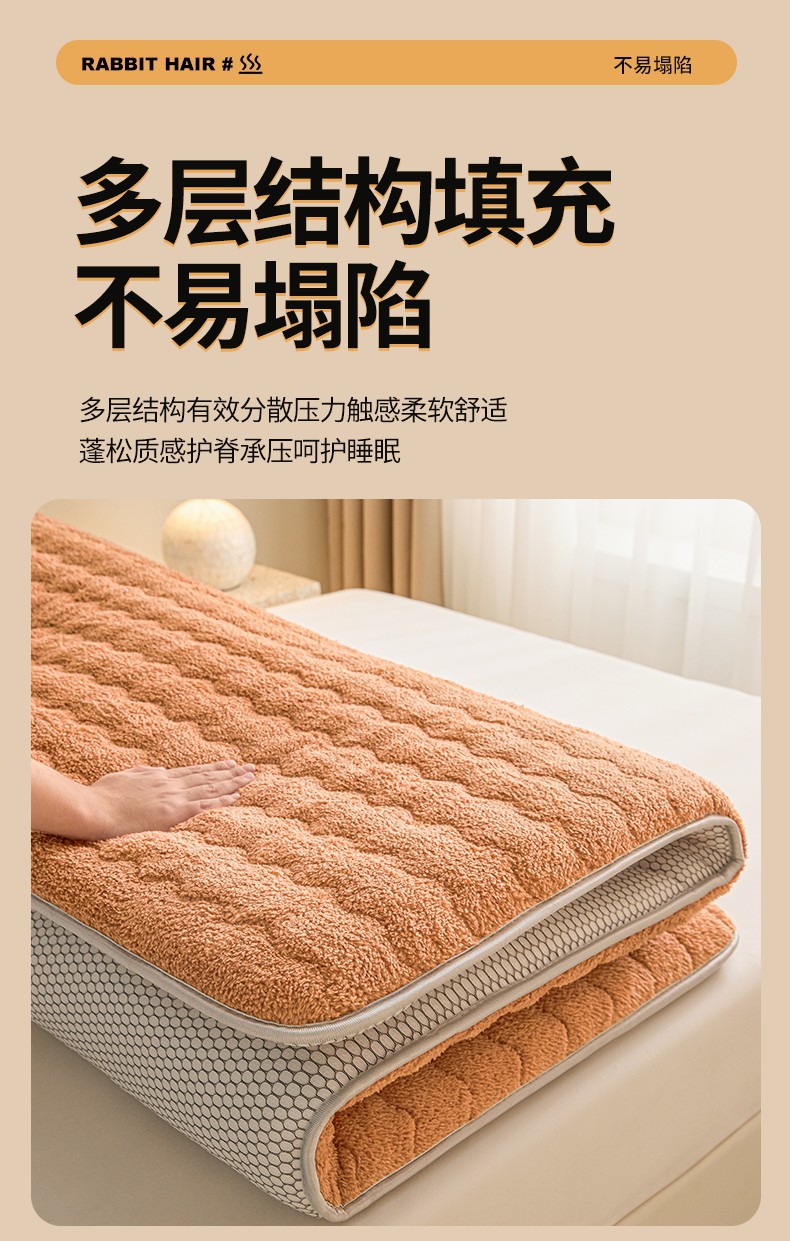 商品名称:月茶家纺 2026新款单边羊羔绒床垫垫子 驼色