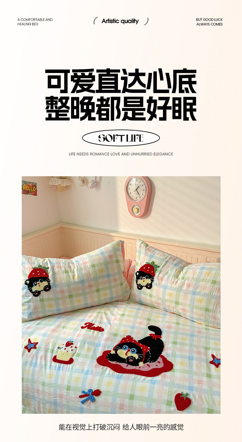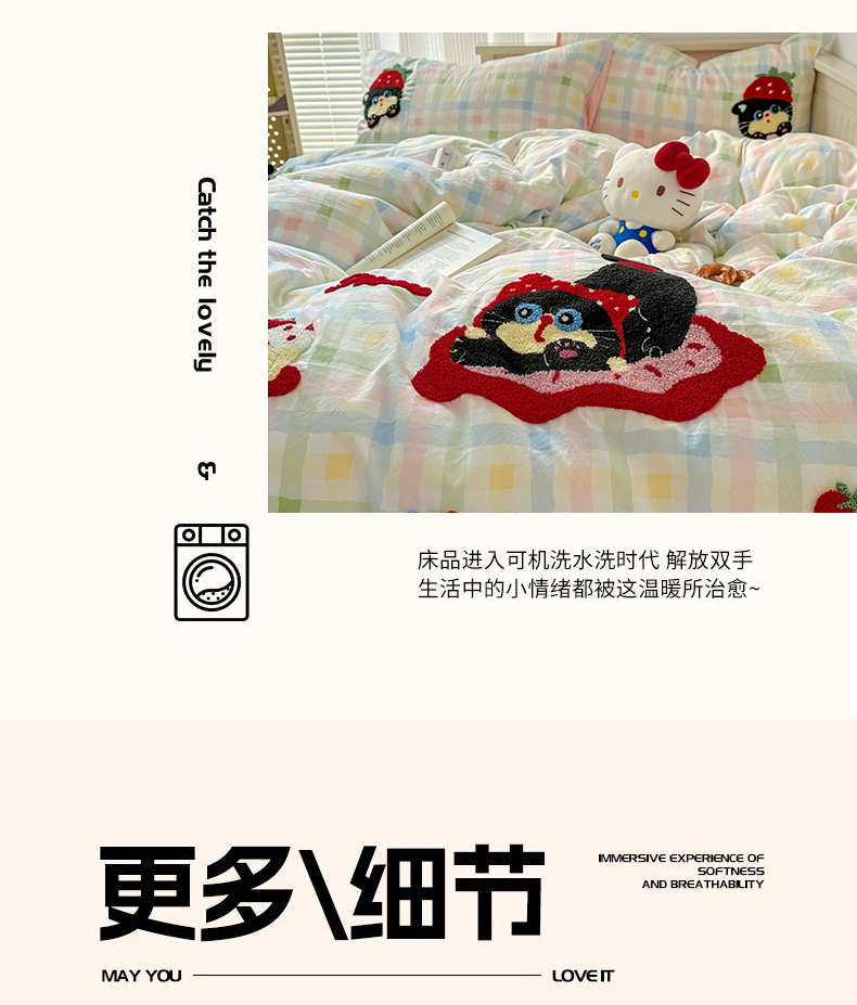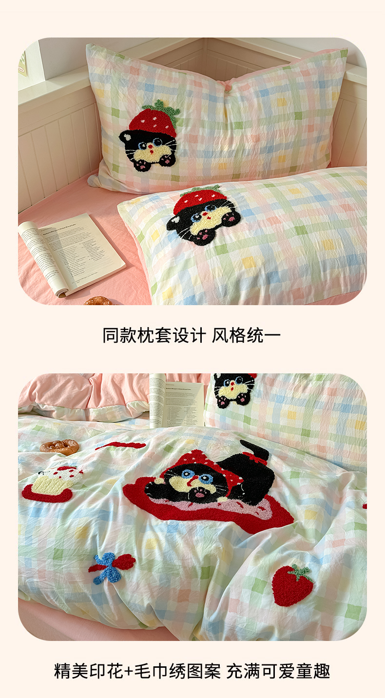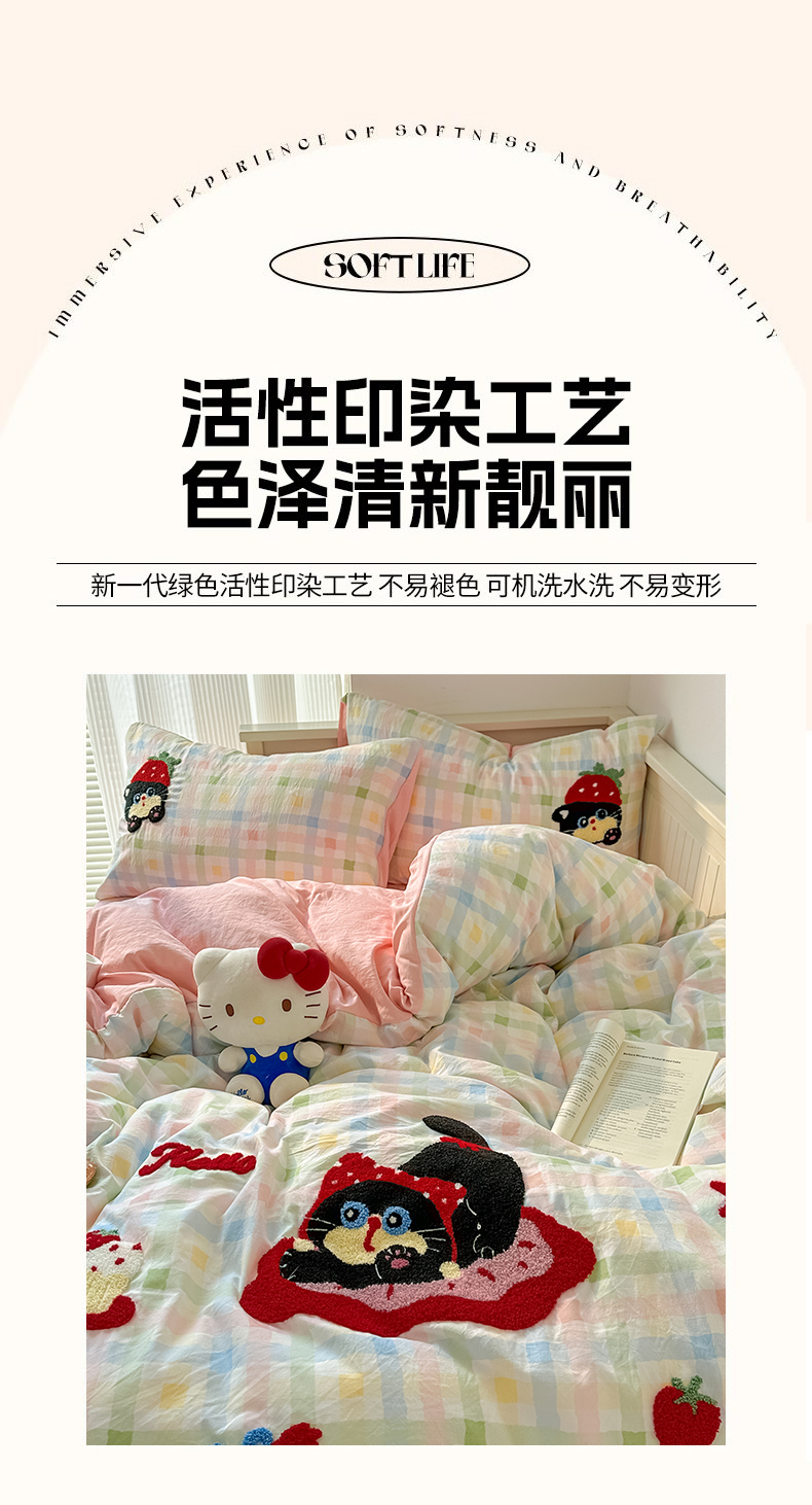 当前位置: 91家纺网 > 商品网购 > 床品套件 > 四件套 > 水洗棉四件套 > 易辰美 2026春夏新款超柔水洗棉四件套 草莓猫咪