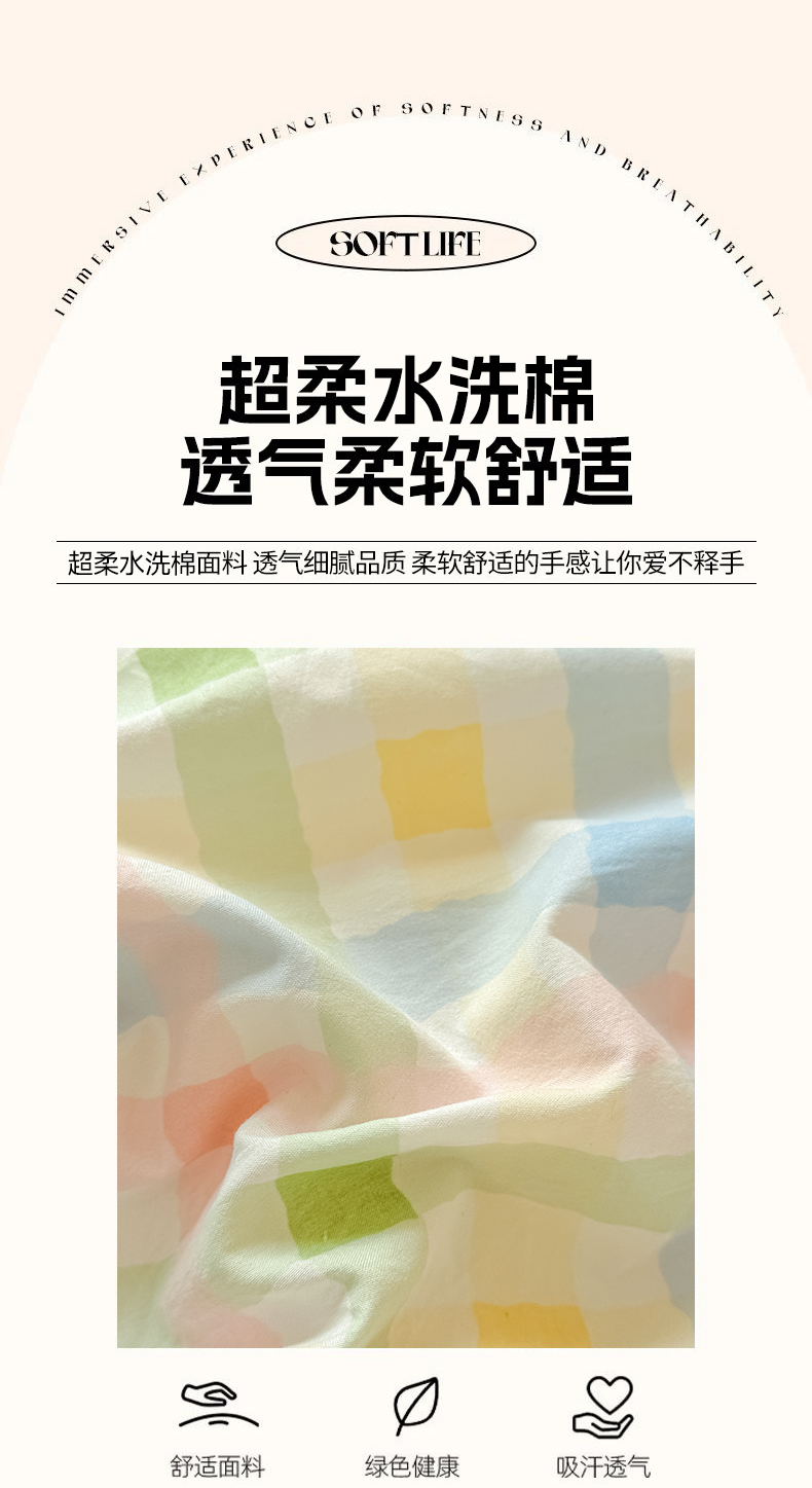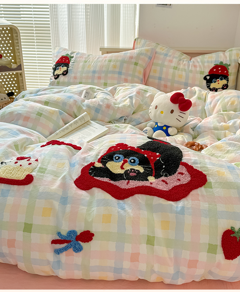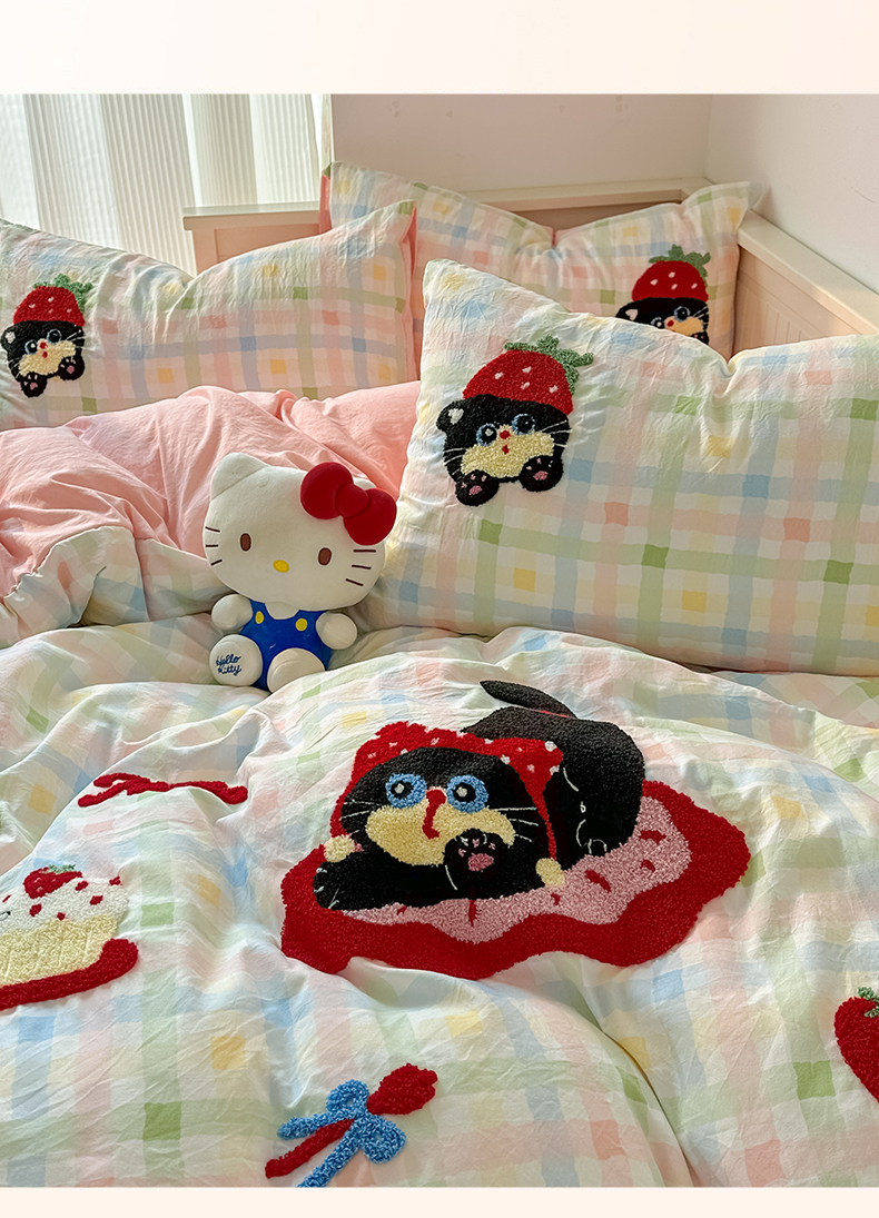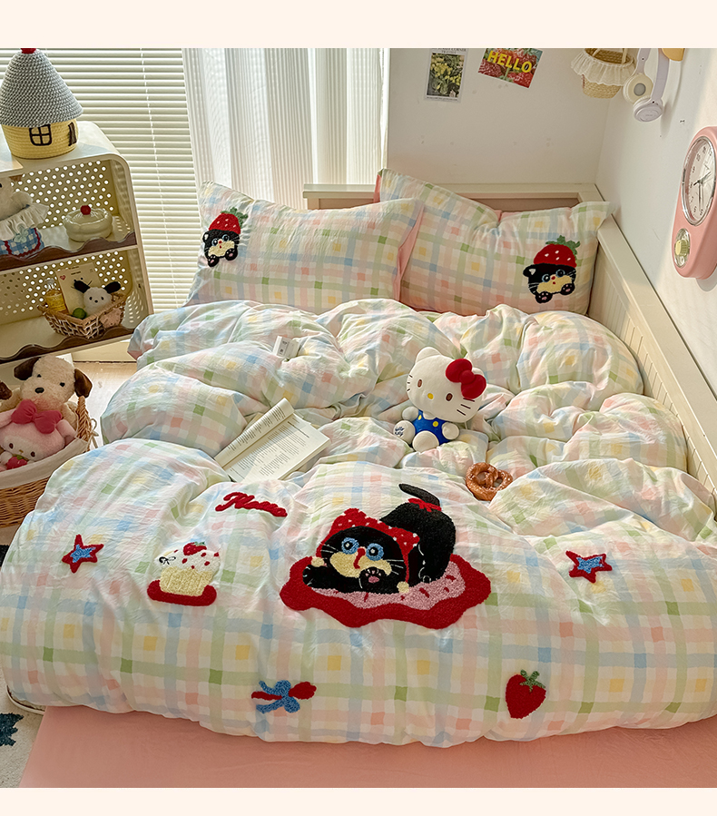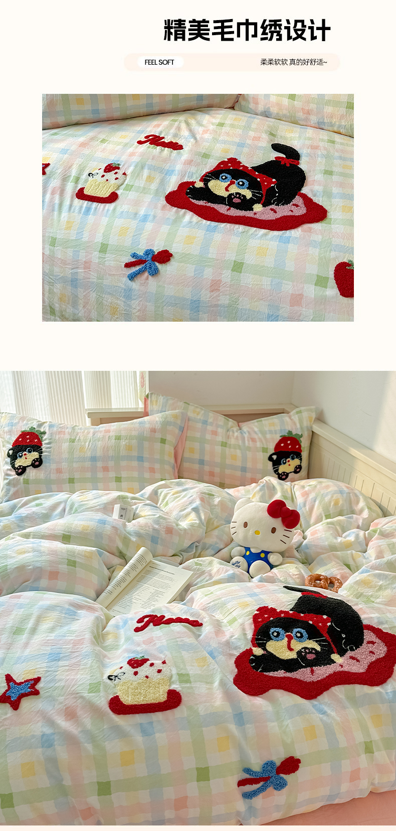 当前位置: 91家纺网 > 商品网购 > 床品套件 > 四件套 > 水洗棉四件套 > 易辰美 2026春夏新款超柔水洗棉四件套 草莓猫咪