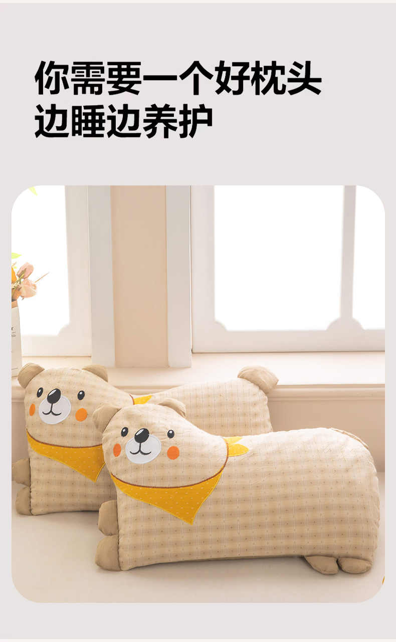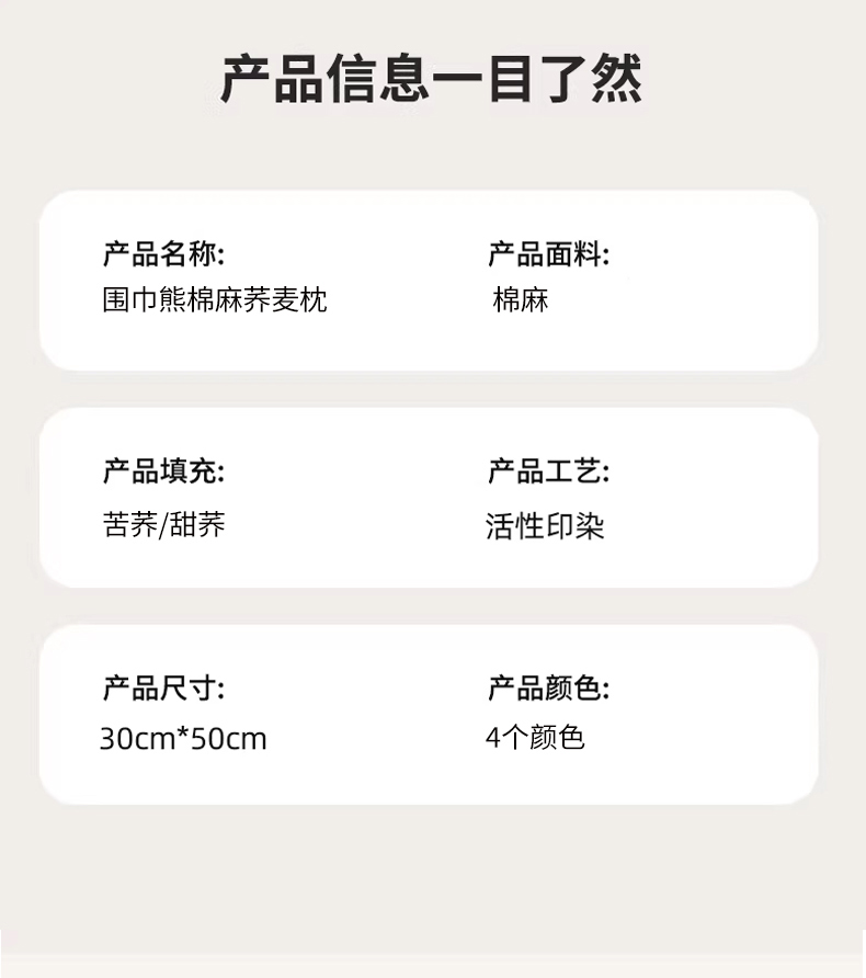 (总)梦莱家纺 2026新款围巾熊棉麻荞麦枕枕头枕芯,组合图仅做展示不可下单,围巾熊-绿,围巾熊-黄,围巾熊-灰,围巾熊-粉