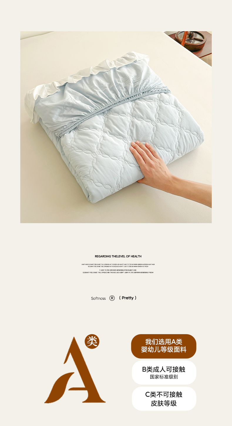 (总)佳笠家居 2026新款A类全棉40支水洗棉少女风花边棉花床笠-场景图,枫舞灰,贵族白,晴空蓝,象牙黄,星空紫,芝夏粉