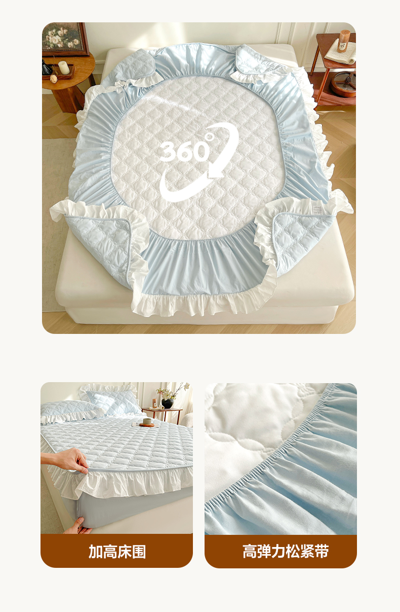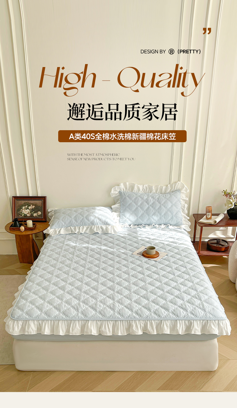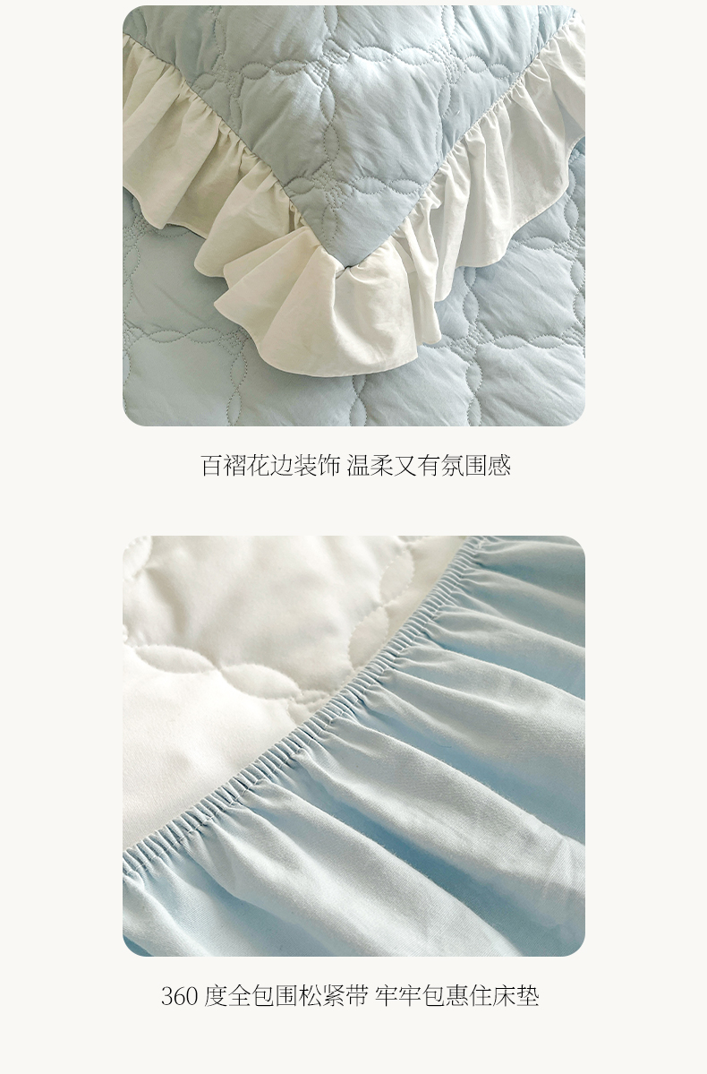• 91家纺网 家纺一手货源 找家纺 (总)佳笠家居 2026新款A类全棉40支水洗棉少女风花边棉花床笠-场景图,枫舞灰,贵族白,晴空蓝,象牙黄,星空紫,芝夏粉