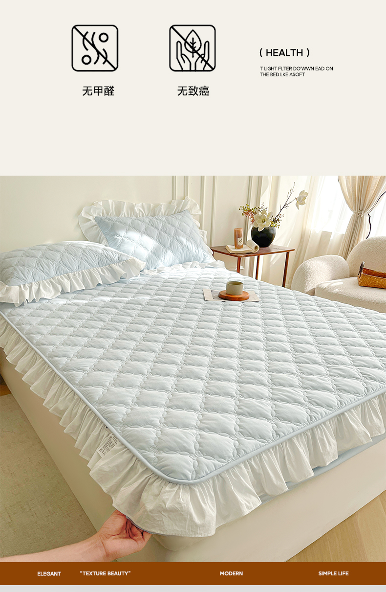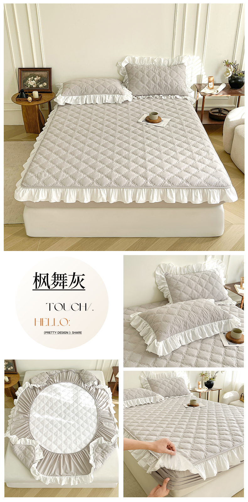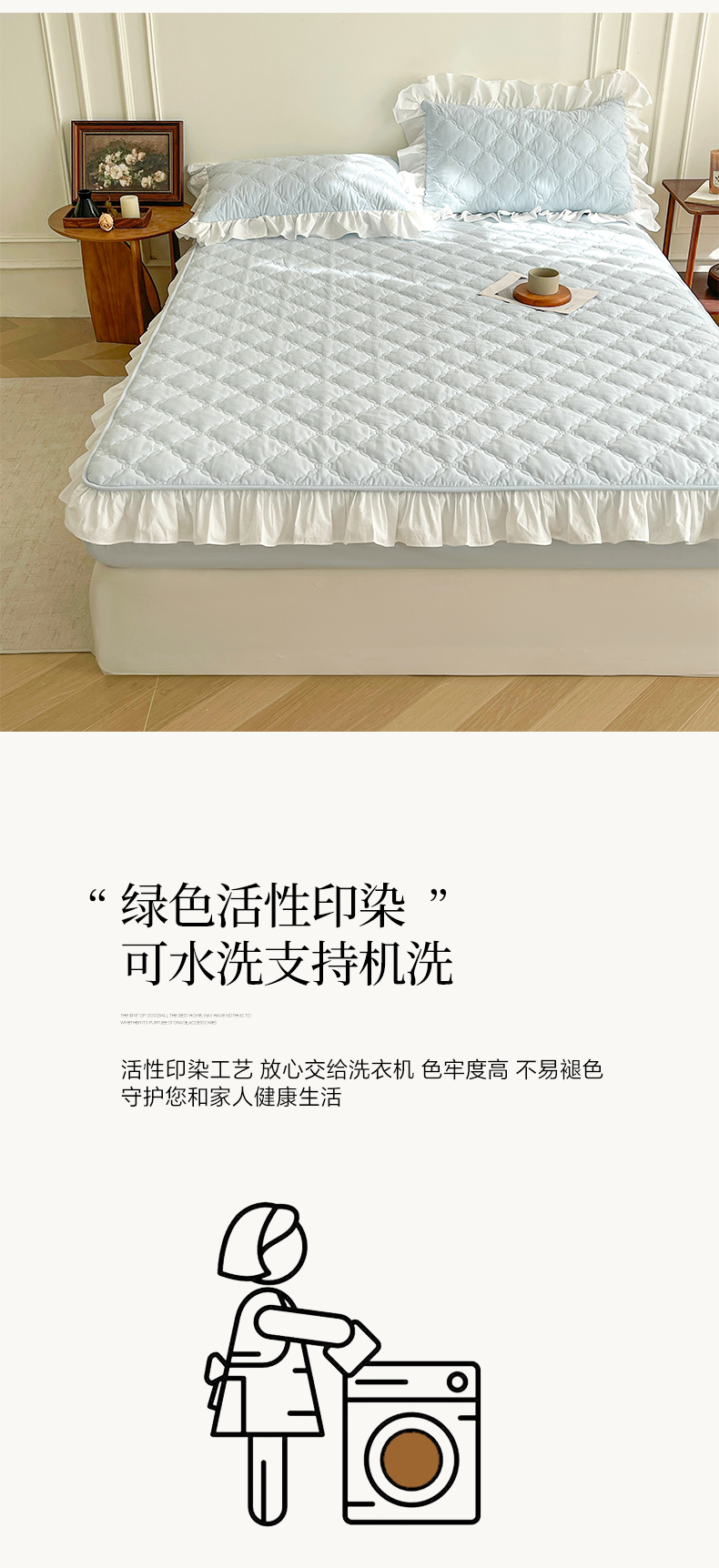 • 91家纺网 家纺一手货源 找家纺 (总)佳笠家居 2026新款A类全棉40支水洗棉少女风花边棉花床笠-场景图,枫舞灰,贵族白,晴空蓝,象牙黄,星空紫,芝夏粉