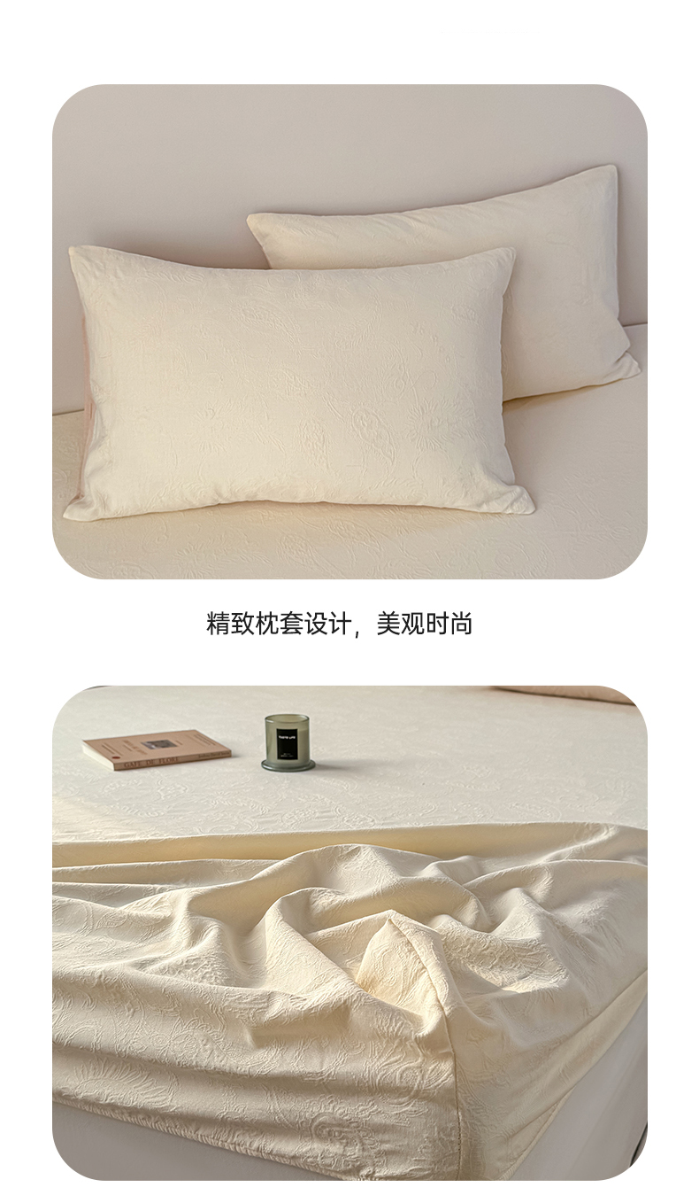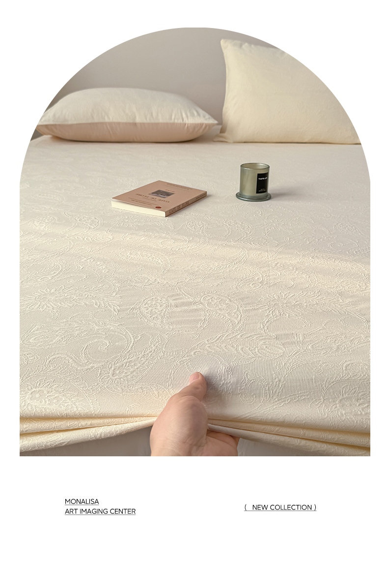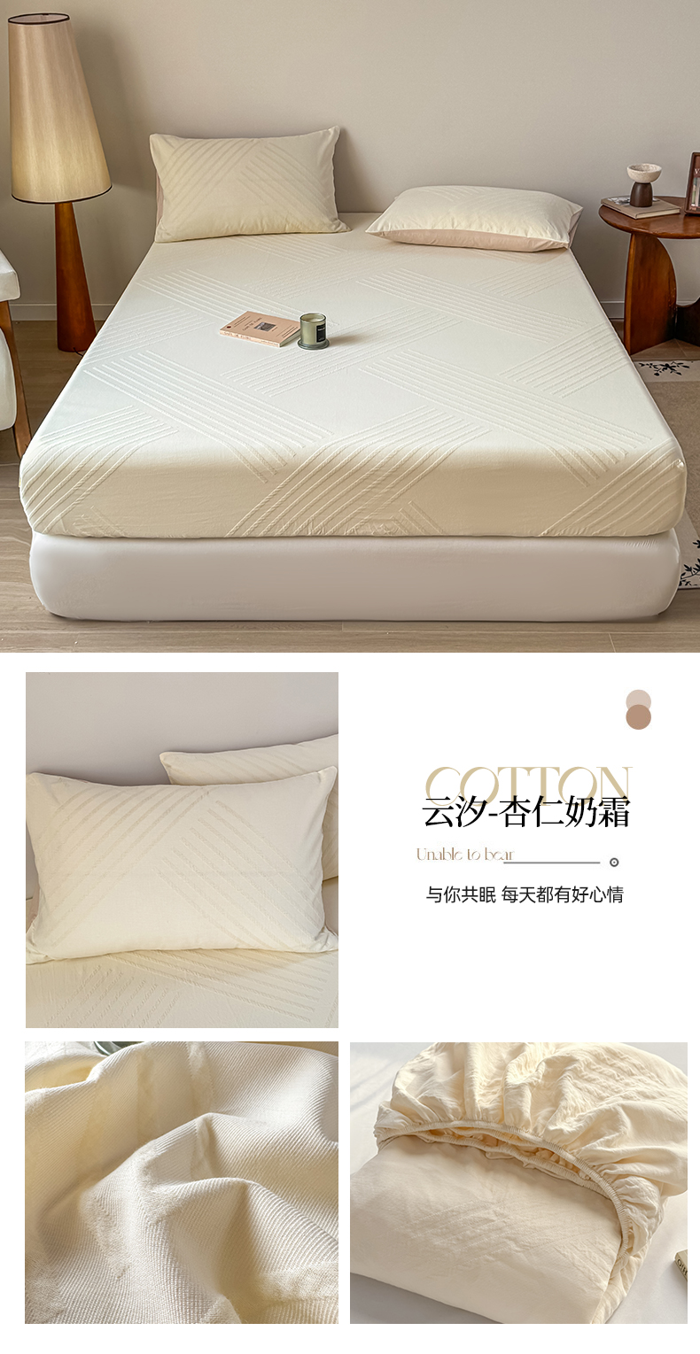• 91家纺网 家纺一手货源 找家纺 灰鲸 2026新款全棉纯棉厚织三层水洗色织提花床笠单品床笠床笠单件 罗格西亚-杏仁奶霜